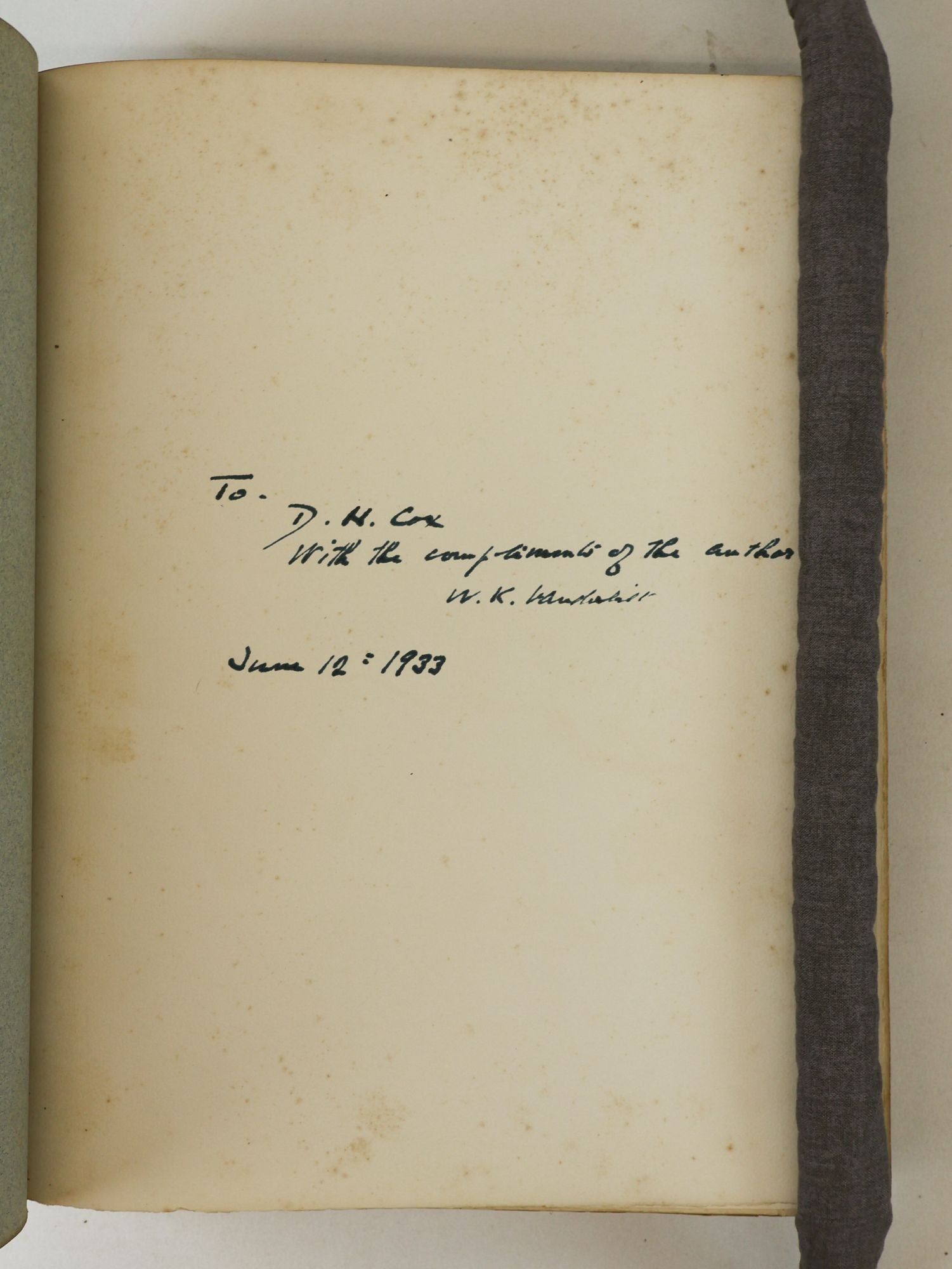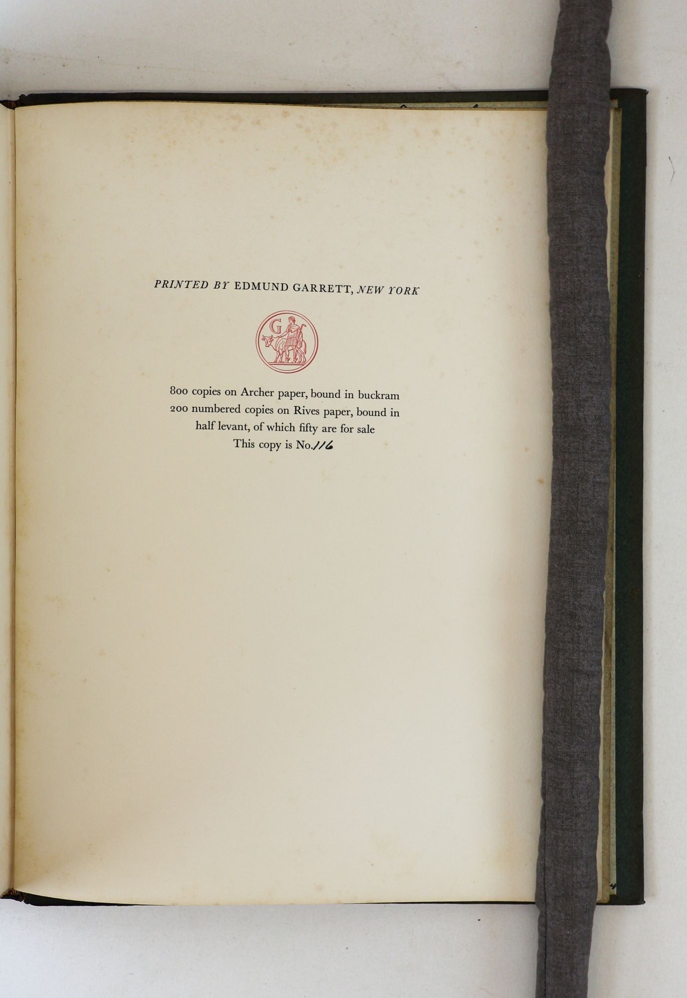 New York: Edmund Garrett, 1933. Limited Edition: #116/200. Hardcover. Folio, xx, 379, [4] pages. In Good condition, lacking issued slipcase. Spine is paneled, quarter-bound in black leather, with gilt text. Boards are bound in green paper and show moderate scuffing and shelf wear on covers and along edges. Some chipping to front board on fore corners and on fore edge, resulting in small areas of exposed board. Several white scuffs present on back cover. Cracking along joints/edges of spine, which is most severe at corners of head, where there is minor splitting. Text block bottom and fore edges are untrimmed, with top edge gilt, and show expected age toning. Light shelf wear and scuffing on text block edges. Foxing present on pages throughout book. Inscribed in dark blue ink by Vanderbilt on first free endpaper: "To D. H. Cox / with the compliments of the author / W. K. Vanderbilt / June 12 1933". Shelved in Room A Oversize.