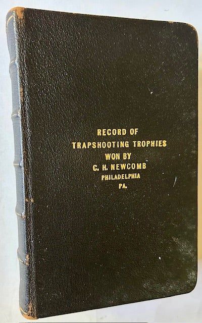 Full leather. Very Good +. Charming handwritten record book, meticulously recorded, of the achievements in the world of trapshooting by Philadelphia businessman and world class trapshooter C.H. Newcomb (Charlie Newcomb, 1874-1947). Newcomb began recording his victories in December 1904 (The S.S. White Handicap Cup in Philadelphia) and continued making precise, very neat entries for the next 38 years, through March 1942 (The Pair Line Pheasants High-In Handicap in Holmsburg, PA). Incredibly, the recording of honors he received (both locally and nationally) take up 493 pages. The record book has held up very nicely as well: clean. tightly-bound and VG+ in its full dark leather, with bright gilt-titling to the front panel. A bit of light rubbing along the spine and mild mustiness emanating from the pages. Thick 12mo, all edges gilt. Also includes an original mounted photograph of Charlie Newcomb, boldly signed by him below the image. Among Charlie Newcomb's accomplishments in the world of trapshooting: Inducted into the PA Trapshooting Hall of Fame 1991; Inducted into the World Trapshooting Hall of Fame 1999; Won the World Championship Cup in Atlantic City in 1910; and set 2 world records in 1914 and 1916 in specific classes of trapshooting. A wonderful piece of Americana.