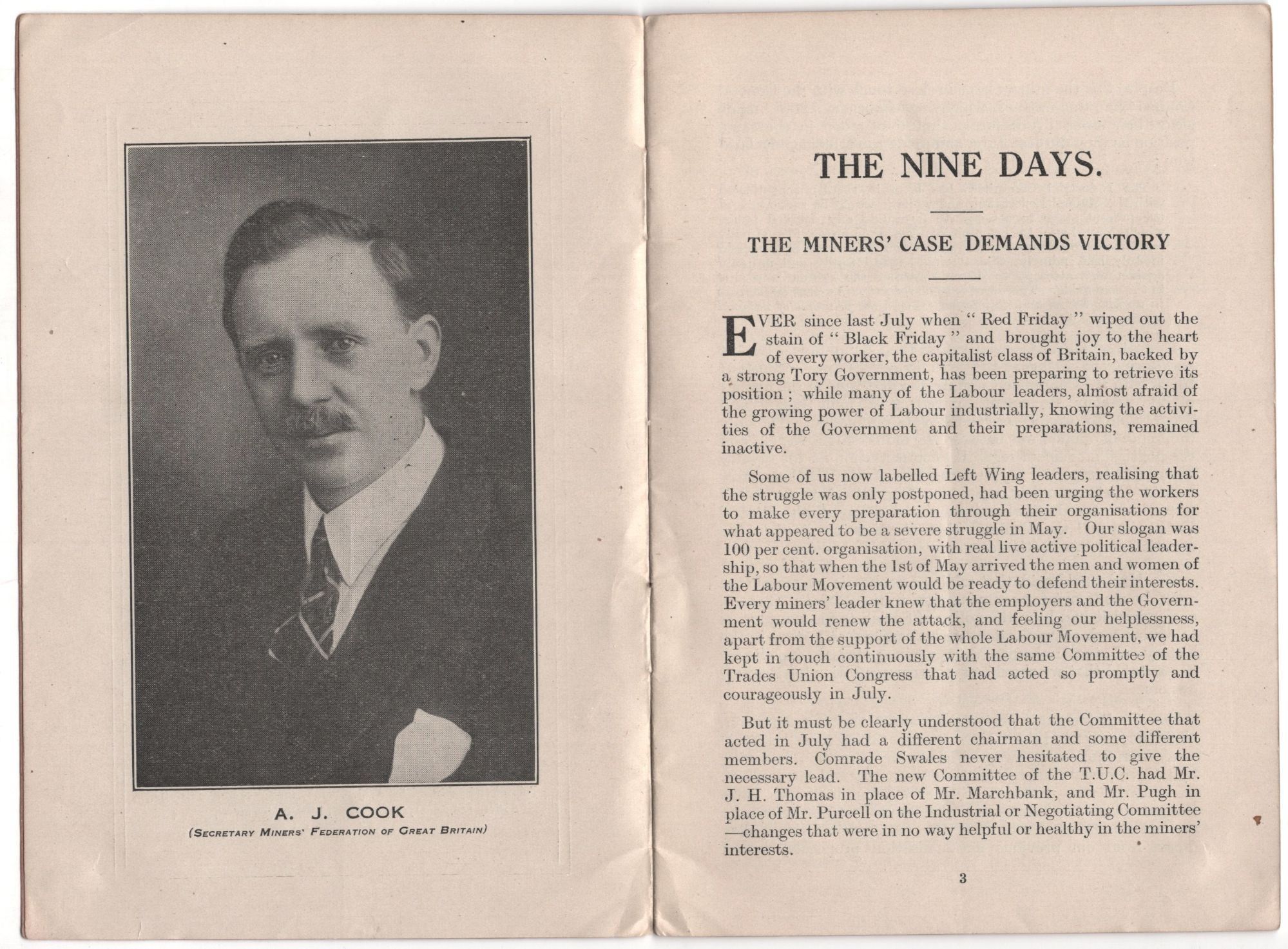 The Nine Days: The Story of the General Strike told by the Miners' Secretary. Sold for the Miners' Wives and Children Fund