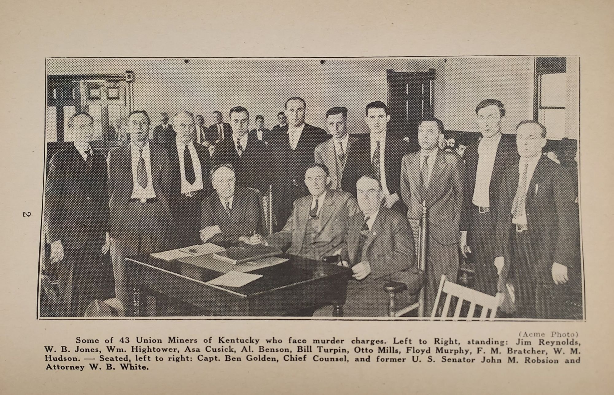 Chicago: General Defense Committee [Industrial Workers of the World / I.W.W. / IWW], 1932. Ephemera. Very Good. 27pp. Slim octavo [22 cm] Saddle-stitched illustrated wraps. Front cover art very likely by Ralph Chaplin (author of "Wobbly: The Rough-and-Tumble Story of an American Radical"). Small illustration on the rear cover by "Bingo" [a Ralph Chaplin pseudonym]. Toned, and with a light moisture stain in the top right corner of the front wrap, and a 1/4" closed tear to the fore-edge of the rear wrap. Else in very good or better condition. "The fight of these courageous mountaineer coal miners is the fight of all of us who are opposed to the use by the Coal Barons of the rack and the thumbscrew in dealing with men who work. The miners are headed toward the electric chair by the economic masters of the Cumberland Coal Fields. Two of them have already been convicted on framed up charges of conspiracy to murder a coal company gun thug. Forty more remain to be tried." - The General Defense Committee