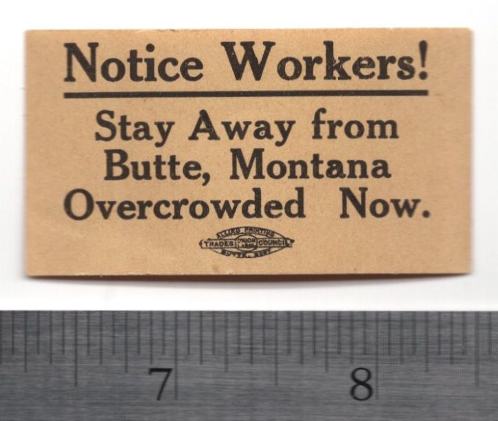 Notice Workers! Stay Away from Butte, Montana. Overcrowded Now!
