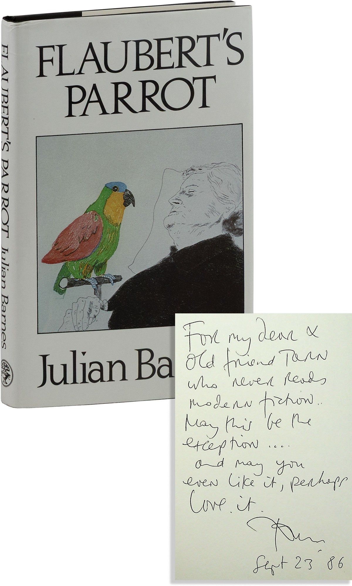 Barnes's third book, a meditation on the precincts of art and life, involving an amateur detective in search of the stuffed parrot that inspired Gustave Flaubert. It was well-received, shortlisted for the Booker Prize, and winning the Geoffrey Faber Memorial Prize. This copy bearing an uncharacteristically lengthy and warm inscription to Nathaniel Tarn (1928-2024), noted poet, translator, and anthropologist who, we can confirm, did not warm to modern fiction overly much. 85610.