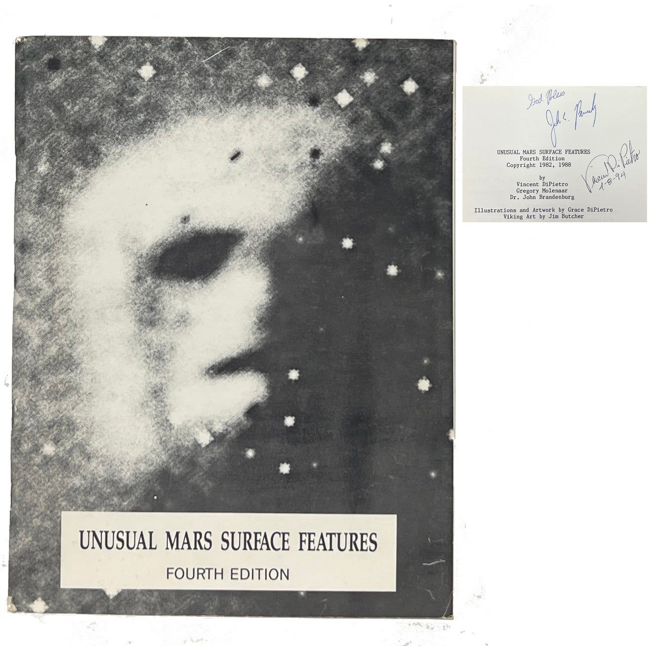 Glenn Dale: Mars Research, 1988. Fourth Edition. Paperback. Very Good. Illustrations and artwork by Grace DiPietro. Viking art by Jim Butcher. Signed by DiPietro and Brandenburg on the title page. Very Good. Wraps lightly worn at the edges a few scuffs to the head and foot of the spine. Firmly bound with two staples, clean internally. An analysis of the images taken by the Mariner and Viking Missions. From the collection of ufologist Tom Benson.