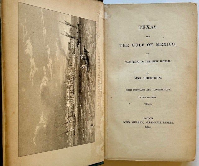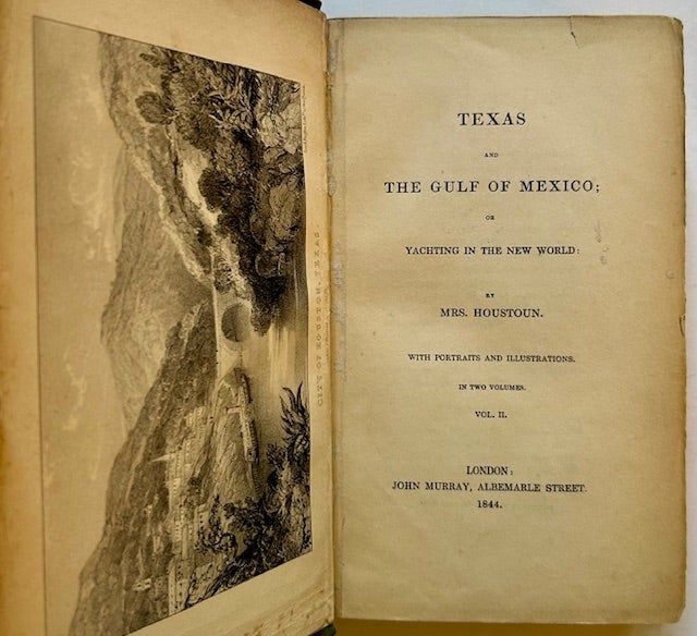 London: John Murray, 1844. Decorative Cloth. Very Good +. A tight, very nicely-preserved example of the 1844 1st edition, complete in 2 octavo volumes. Both volumes clean and VG+ in the publisher's original dark-green cloth, with blindstamped bordering and illustrations of the yacht itself ("The Dolphin") along the front panels. Bright, unrubbed gilt-titling at the spines, in addition to decorative blindstamped compartments. Internally, no writing whatsoever and only occasional, very mild spotting. Very light chipping and mild wear as well to the spine ends. The endsheets have been professionally and tastefully renewed, otherwise the set is in its completely original state. Lovely frontispiece etchings ("The City of Galveston" and "The City of Houston"), plus 8 additional illustrations/portraits (collated and complete). Mrs. Houston sailed from England in 1843 for the West Indies, New Orleans and Texas. She was an astute observer who recorded the lives of the local inhabitants, including Indians. Aside from being a very important yachting book, this is a also a desirable piece of Americana, and is described at length in Jenkins's "Basic Texas Books". Of her writing he says: "Her narrative is so light and breezy that it is easy to shrug it off as superficial; in fact, she gives us some exceptional insights into Texas of the 1840s". This work is generally regarded as the first printed account of a trans-Atlantic yacht voyage and is quite scarce, not listed in either Toy or Morris and Howland. (Jenkins 97, Howes H-692). The titles of the 8 additional plates appearing throughout the text; "Funchal, Madeira"; "Nancy, the Black Woman"; "Dolphin Yacht in the Mississippi"; "Portrait of General Santa Anna"; "New Orleans black dandy"; "President Houston"; "Havana Harbour"; and "Plaza des Armas, Havana