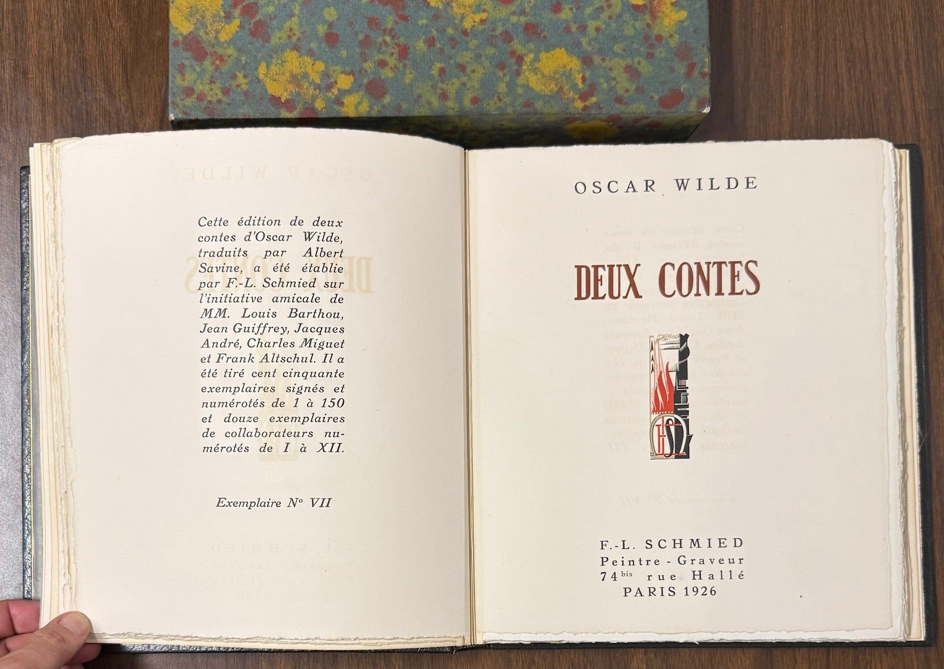 French translation by Albert Savine of Wilde's The Happy Prince and the Nightingale and the Rose. Number VII of XII copies de collaborateurs, signed by the artist.
