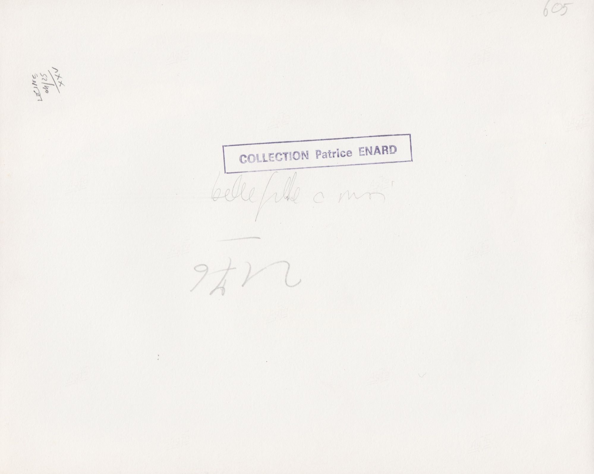 N.p.: N.p., 1972. Vintage borderless reference photograph from the 1972 French film, showing actress Bernadette Lafont topless in bed. Provenance stamp on the verso.