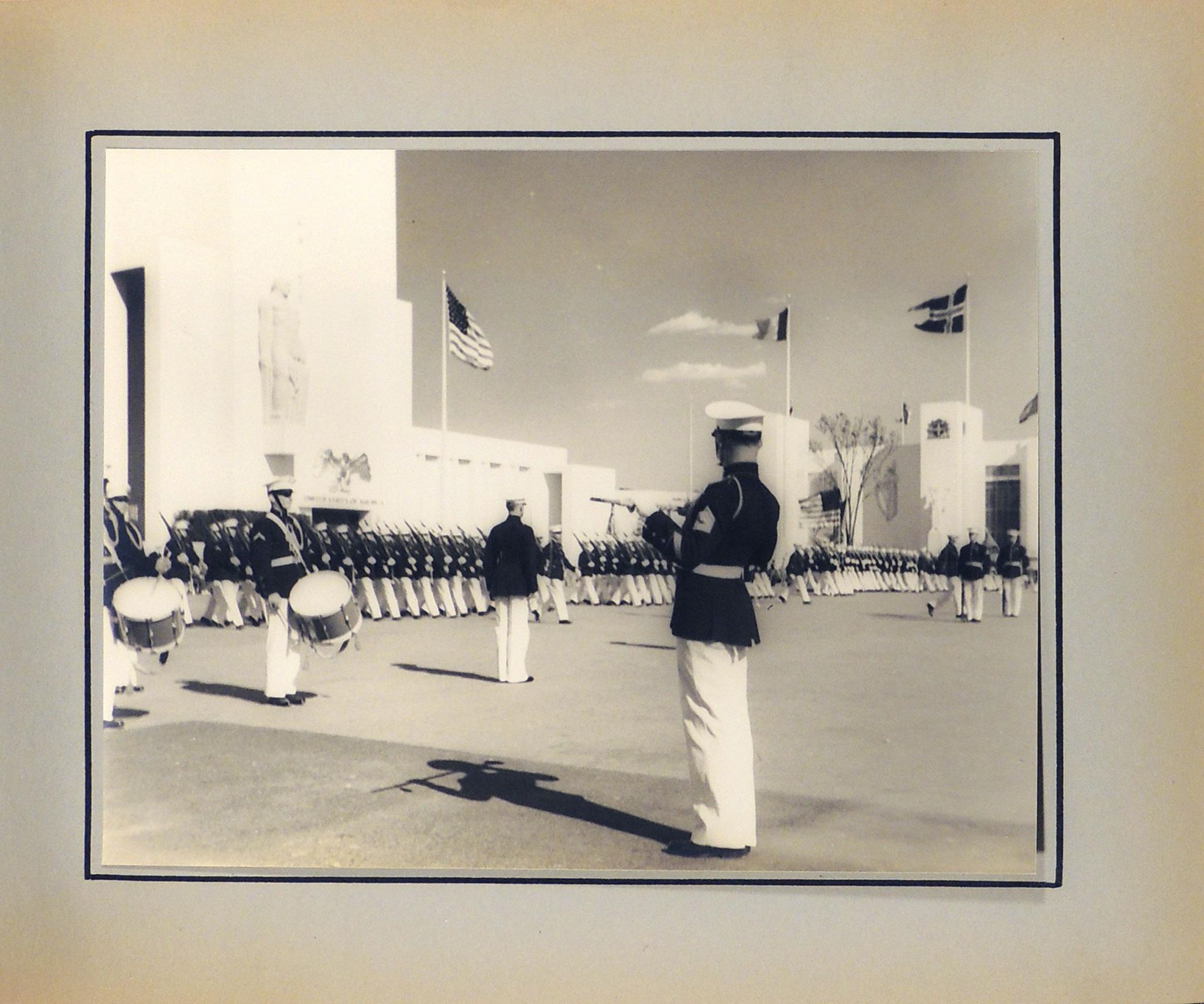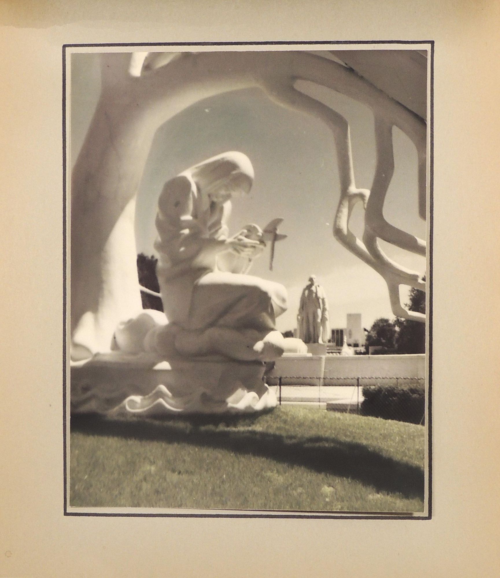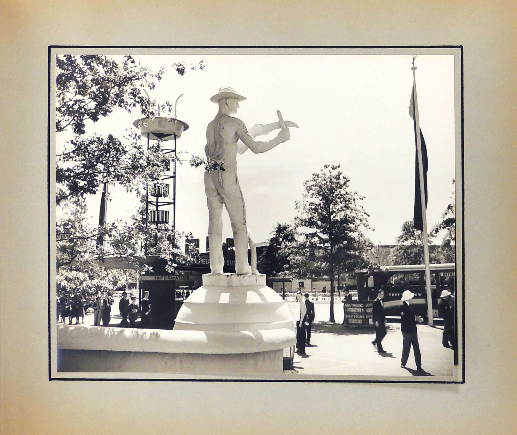 An outstanding photographic record of this consequential world event. With this album Titus Geesey created a remarkable record of one of the most important world's fairs perhaps ever held. The 1939-1940 New York World's Fair was particularly noteworthy. The New York World's Fair of 1939 and 1940, was held in Flushing Meadows in the Borough of Queens. The Fair commemorated the 150th anniversary of Washington's presidential inauguration in New York City and took "Building the World of Tomorrow" as its central theme. Participants included close to 60 nations, 33 states and U.S. territories, and over a thousand exhibitors, among them some of the largest corporations in the United States. After enduring 10 harrowing years of the Great Depression, visitors to the 1939–1940 New York World’s Fair found welcome relief in the fair’s optimistic presentation of the “World of Tomorrow.” Pavilions from America’s corporations and dozens of countries were spread across a 1,216-acre site, showcasing the latest industrial marvels and predictions for the future intermingled with cultural displays from around the world. Well known for its theme structures, the Trylon and Perisphere, the fair was an intriguing mixture of technology, science, architecture, showmanship, and politics. Proclaimed by many as the most memorable world’s fair ever held, it predicted wonderful times were ahead for the world even as the clouds of war were gathering. PHOTO/063025.