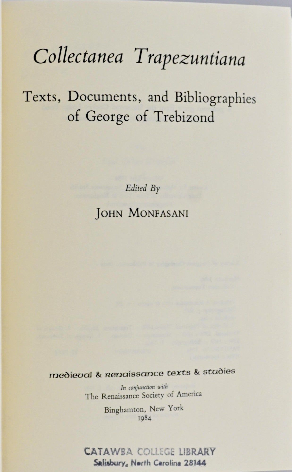 [BOOKS ON BOOKS] COLLECTANEA TRAPEZUNTIANA TEXTS, DOCUMENTS, AND BIBLIOGRAPHIES OF GEORGE OF TREBIZOND (LATIN EDITION)