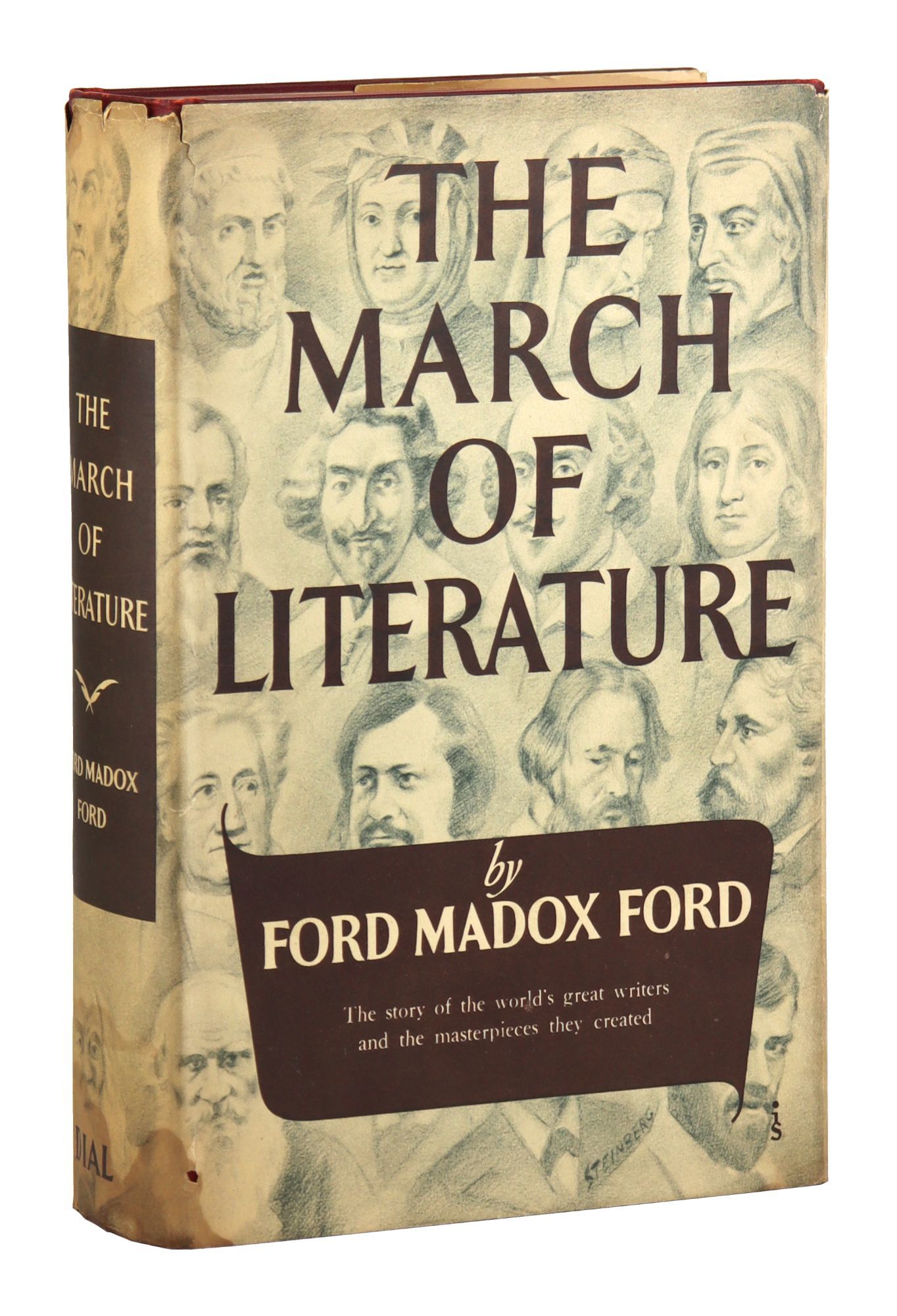 New York: Dial Press, 1938. Very Good/Very Good -. New York: Dial Press, 1938. First Edition. Thick octavo; publisher's cloth, red topstain, in pictorial dust jacket retaining original price ($3.75); vii,[3],878pp. Moderate wear to jacket margins, spine a bit toned, dark staining along bottom edge of rear panel and spine foot, old tape repair to verso not showing through externally; a Very Good copy in Good to Very Good jacket.