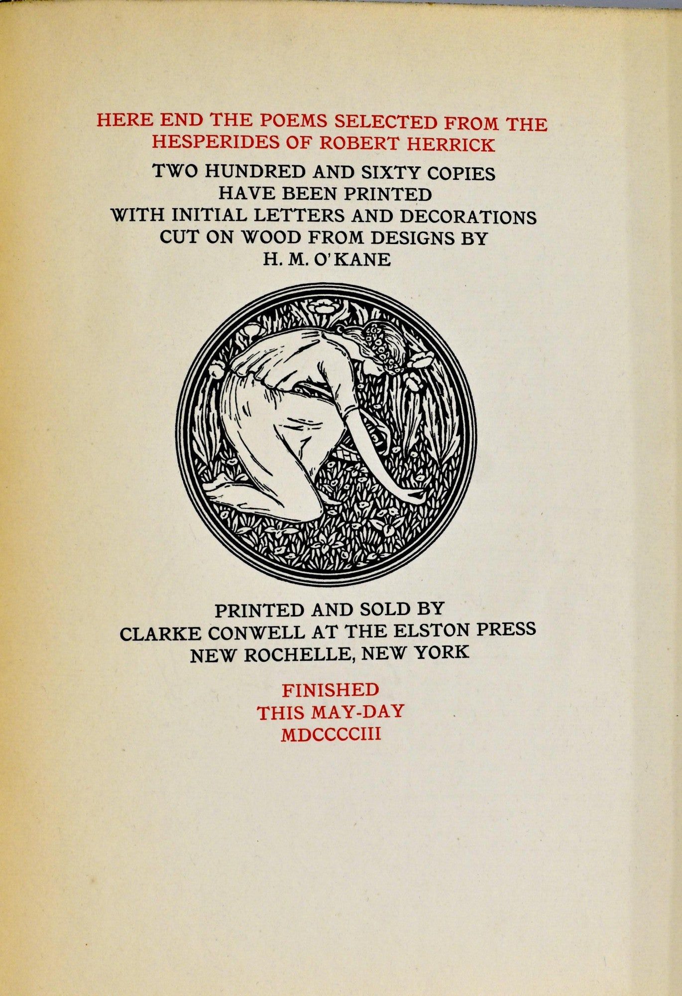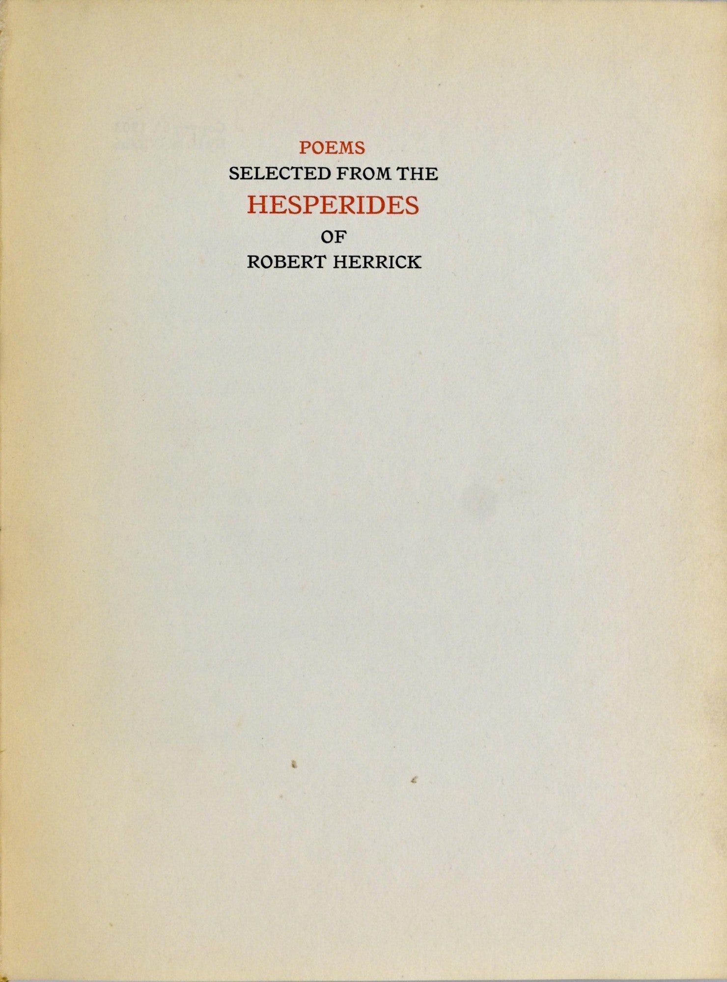 [SIGNED] [SPECIAL PRESS] POEMS SELECTED FROM THE HESPERIDES OF ROBERT HERRICK