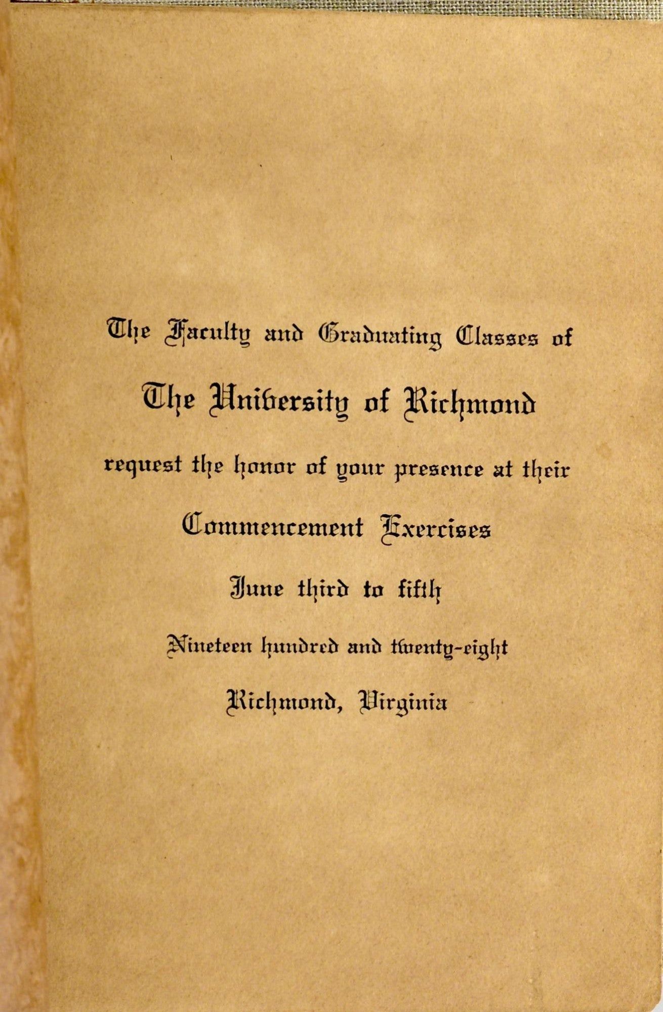 [RICHMOND] COMMENCEMENT EXERCISES. PROGRAM FOR 1928
