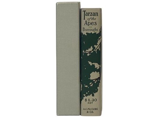 Shelton, Connecticut: First Edition Library, 1990. Reissue. Hard Cover. Near Fine/Very Good. 8x5x1. Circa 1990 replica. Includes publisher's slipcase. Jacket a bit wrinkled from previous owner applying a mylar cover too tightly (now removed), otherwise an excellent copy. 400, [1] pp. "How the son of an English nobleman came to be born in Africa and raised as 'Tarzan' by a she-ape; relating his life in the jungle, his meeting Jane Porter and his journey to America to find her...