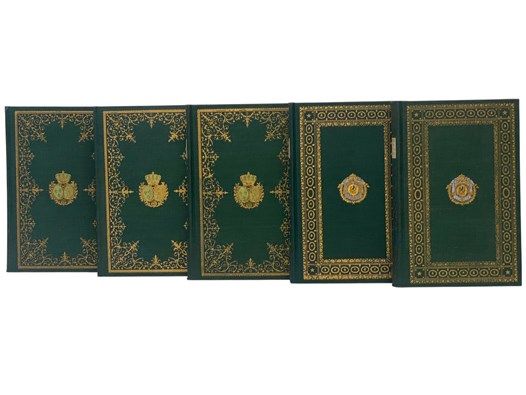 New York: P.F. Collier & Son, 1910. Reissue. Hard Cover. Very Good/No Jacket. 0x0x0. LACKS ONE VOLUME (there should be an additional blue cloth volume on Madame du Barry). 1910 Hard Cover. Green, brown, red, and blue cloth, gilt titles and decorations. Color and half-tone frontispieces, half-tone plates. An important collection of biographies of the nobility and aristocracy in Europe, compiled from writings and correspondence by members of the court and their staff. Includes an inside look at the courts of Empress Josephine, Napoleon, the French, German, and Austrian royal families, and Louis XIV and XV.