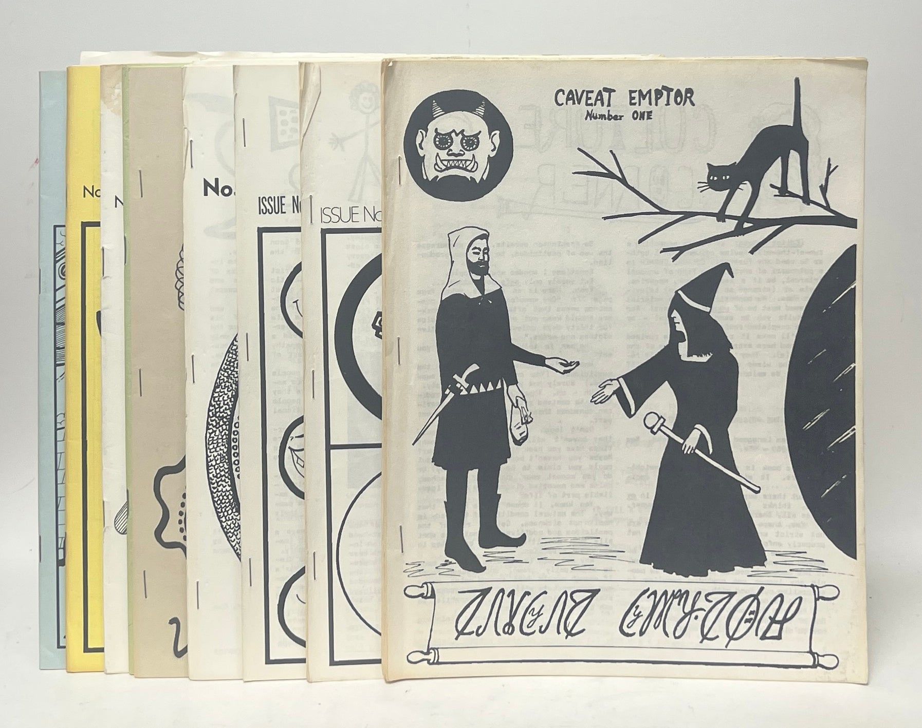 Charleston: G&G Enterprises, 1973. Staplebound. Very Good. Nine issues. Generally Very Good. Covers and pages with some bumps and light creases, a stain to the cover of Number Seven. All issues firmly bound with staples, clean internally. These issues of this 1970s zine feature articles from the likes of Allen Greenfield, Ray Palmer, Jim Moseley, John Keel, Richard Shaver, Kenneth Alpert, Curt Sutherly, among others. From the collection of ufologist Tom Benson. [Eberhart 9468].