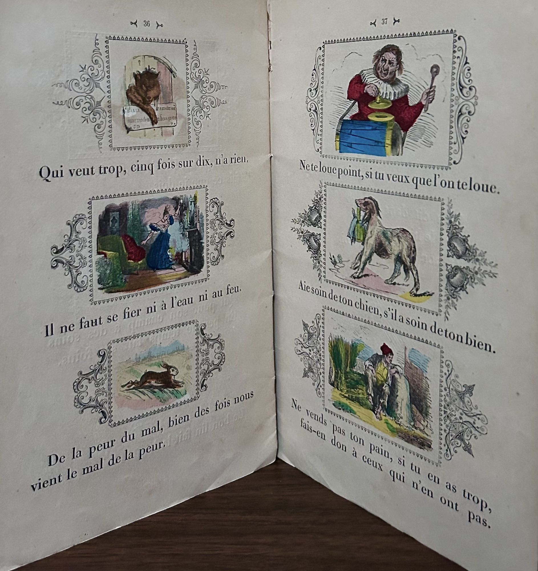 Paris: Librarie Francaise et Anglaise de J.H. Truchy, Nd. First edition. Boards. Orig. illustrated boards lettered and illustrated. Very good. 38 pages. 26.5 x 17 cm. With a series of multiple chromolithograph illustrations per page. The last few pages carry even more color lithographs per page. Interior contents clean and and bright. Text in French. Title page toned as is the very last page. Cover wear at edges and spine. OCLC: 319519629.