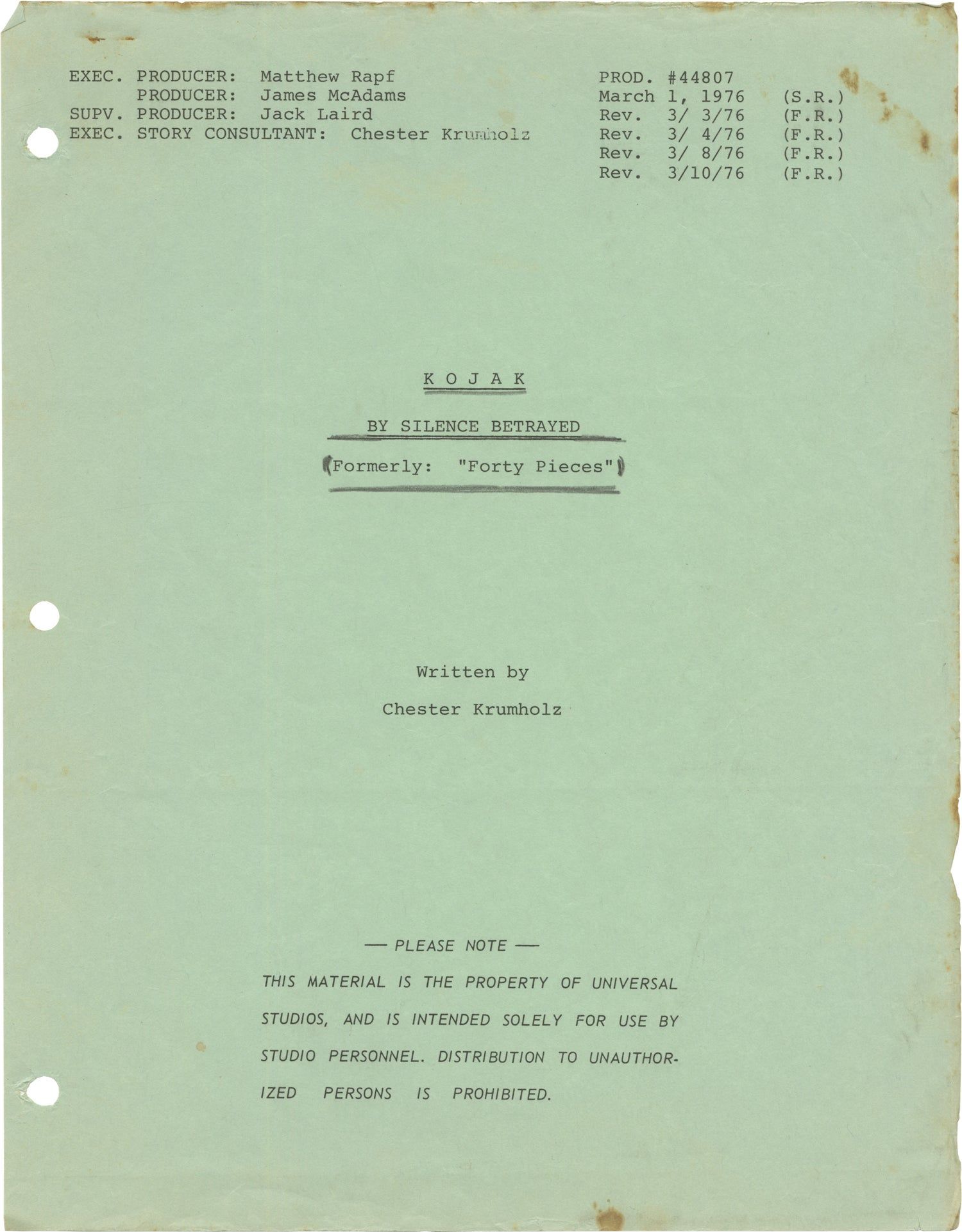 Kojak: By Silence Betrayed (Original screenplay for the 1976 episode of the 1973-1978 television series)
