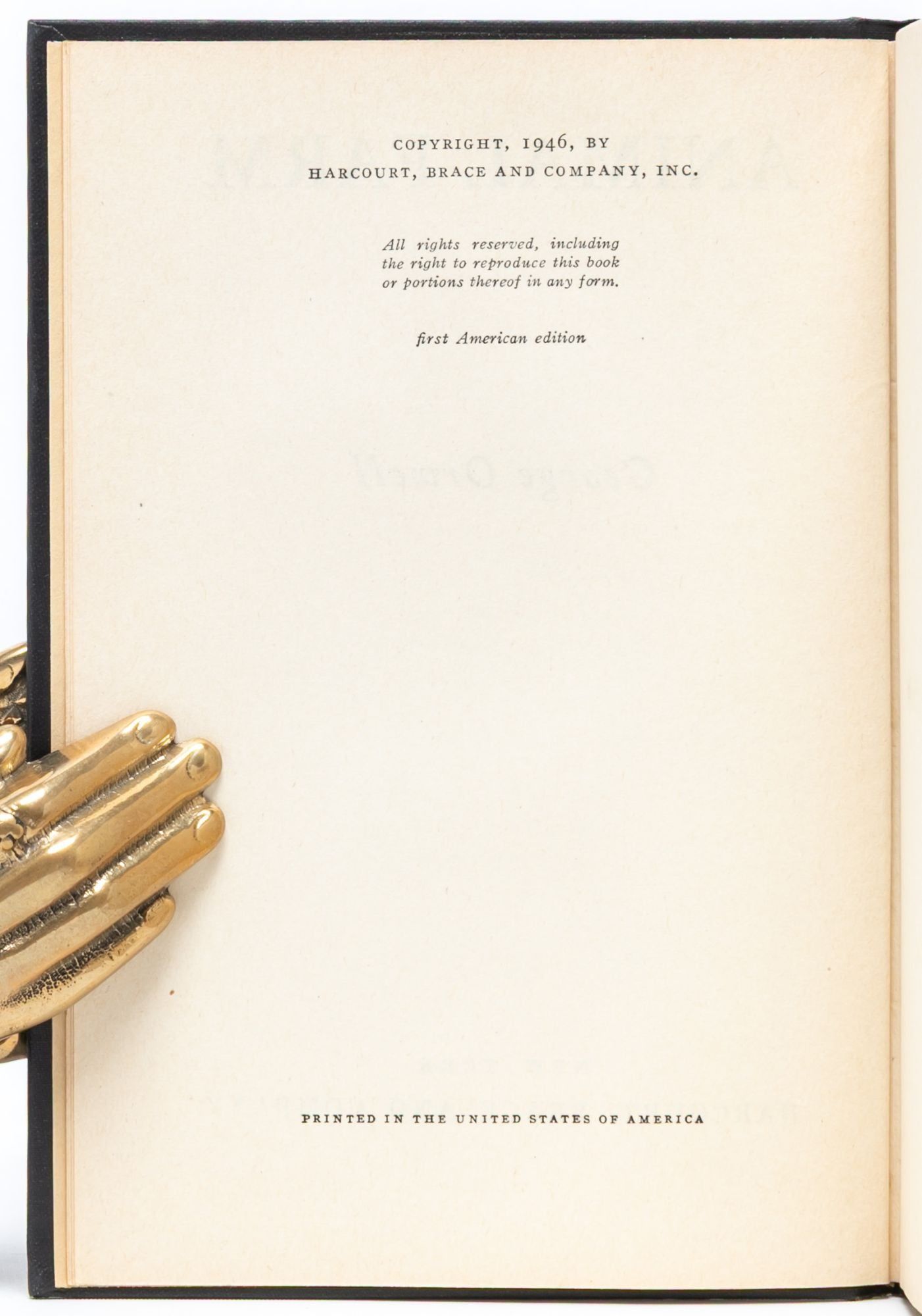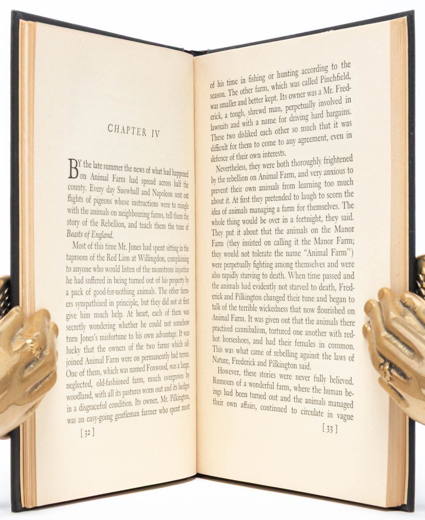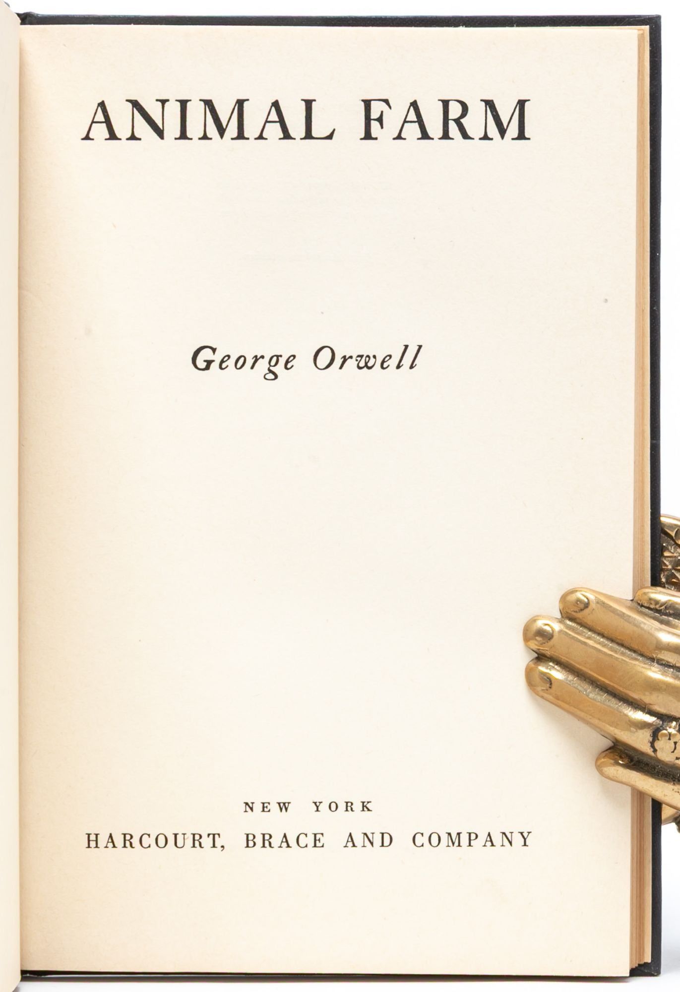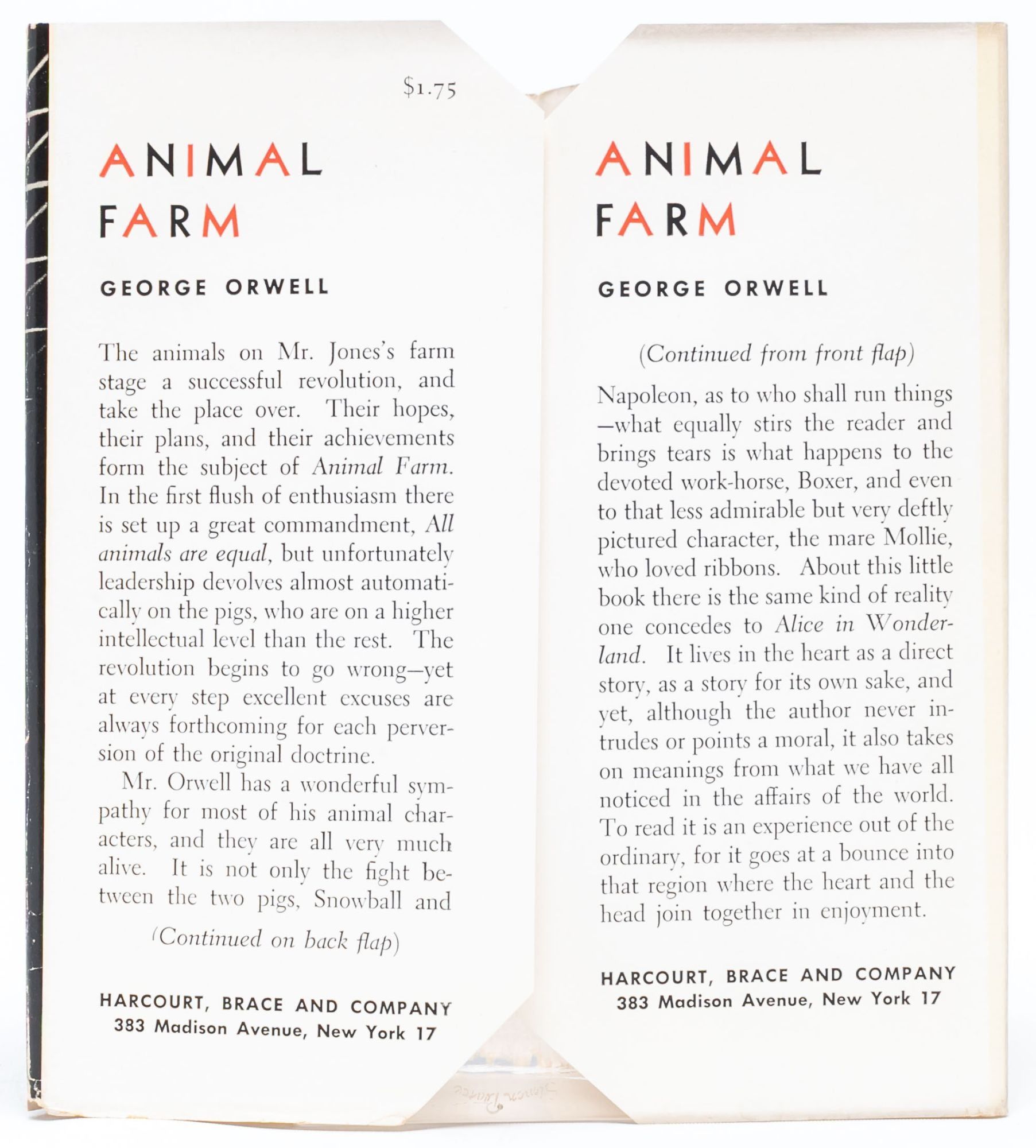 "The best fable in the English language" (Connolly). Orwell's satirical masterpiece, which has earned him his place in the canon alongside Defoe and Swift, was completed in 1944 and was rejected by four major publishers as "inappropriate" before being accepted and released by Secker & Warburg in 1945. It brought Orwell instant fame and a massive international readership; 250,000 copies were sold in the first year alone. It has, since then, survived as an example of how literature can translate complex ideas in simple and understandable terms. "Orwell believed passionately and politically that no meaningful idea was too difficult to be explained in simple terms to ordinary people" (Oxford DNB). It was like Orwell, then, to present such a work to a fellow writer who was similarly working to enlighten the English people about the political structures and debates surrounding them during and following wartime. Fine in Near Fine dust jacket.