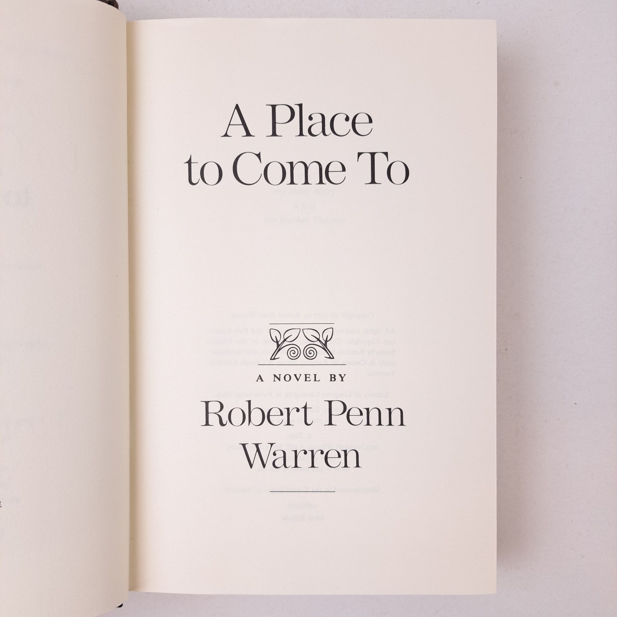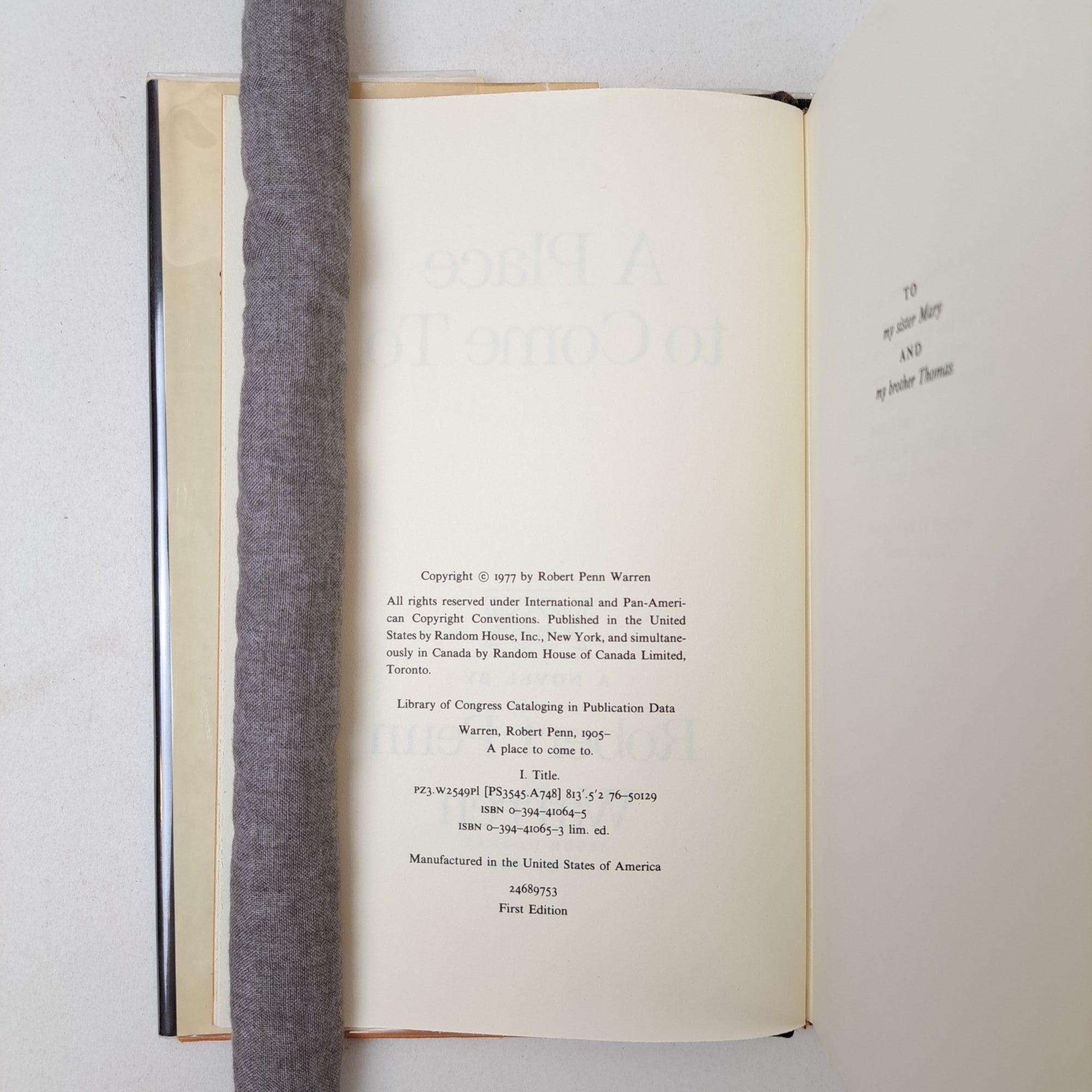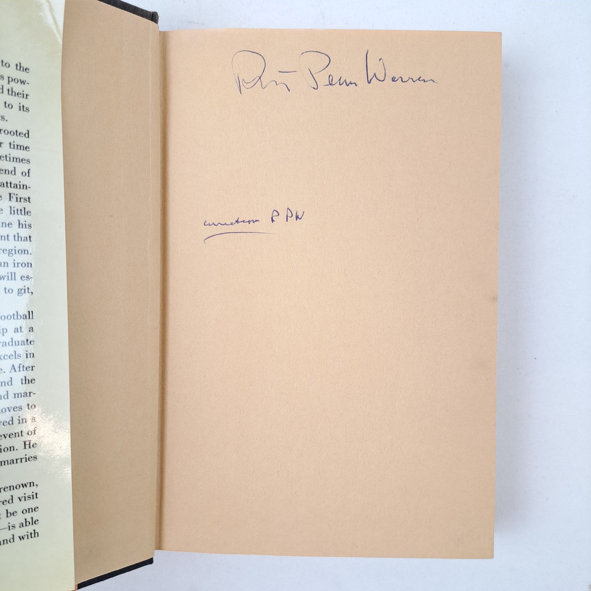 New York, New York: Random House, 1977. First Edition, First Printing. Hardcover. Octavo, 401 pages. In Very Good condition with Very Good condition dust jacket. Spine is black with yellow and orange lettering. Dust jacket protected by mylar covering, price uncut: "$10.00" on front flap, has mild shelving wear along tail edges. Boards have mild shelving wear along extremities; spine mildly cocked. Textblock head edge has mild dust-burning; has Robert Penn Warren's corrections throughout text, pages indicated by laid-in cards. Signed flat by Robert Penn Warren on front free-endpaper. Shelved Room C. 1401191. Special Collections.