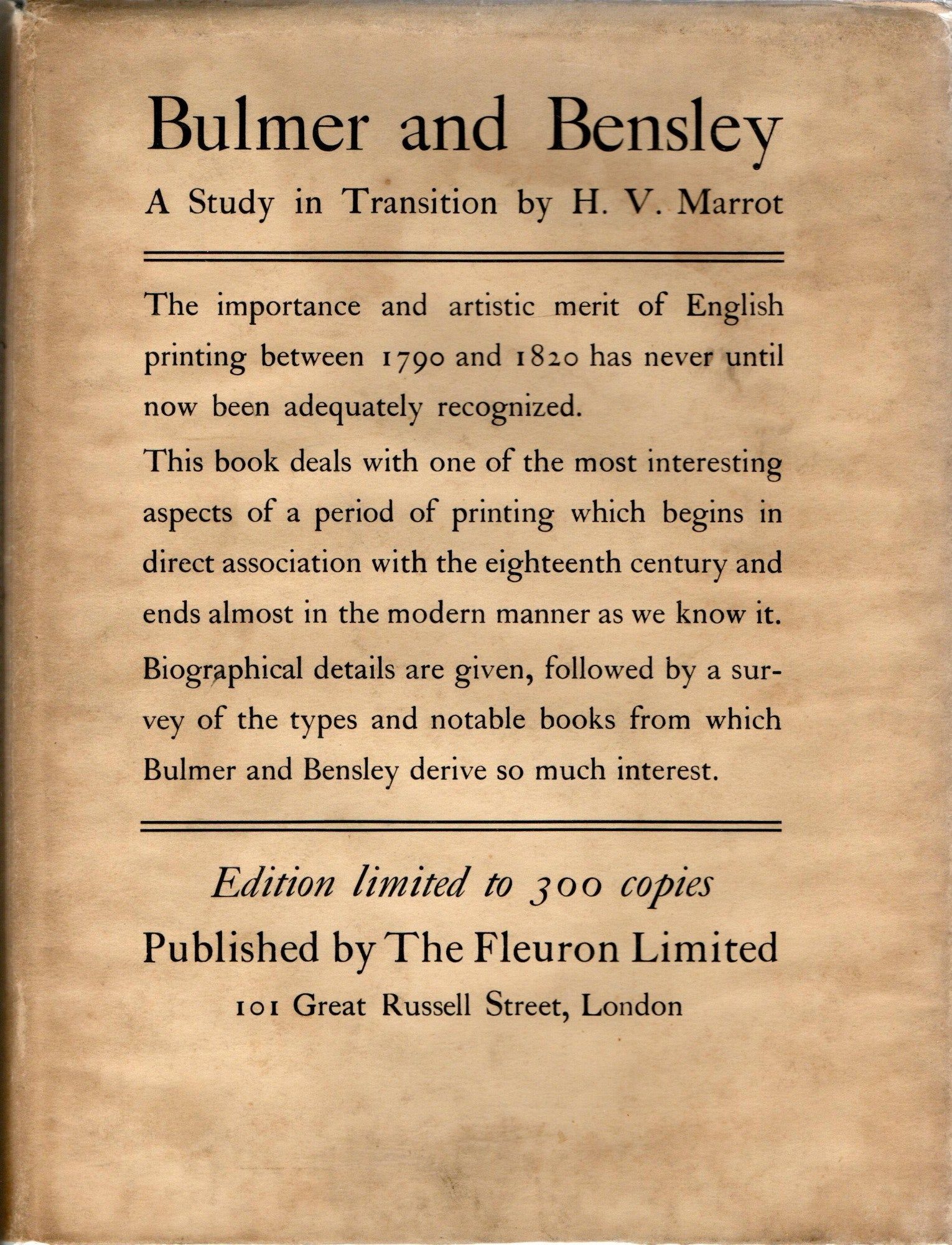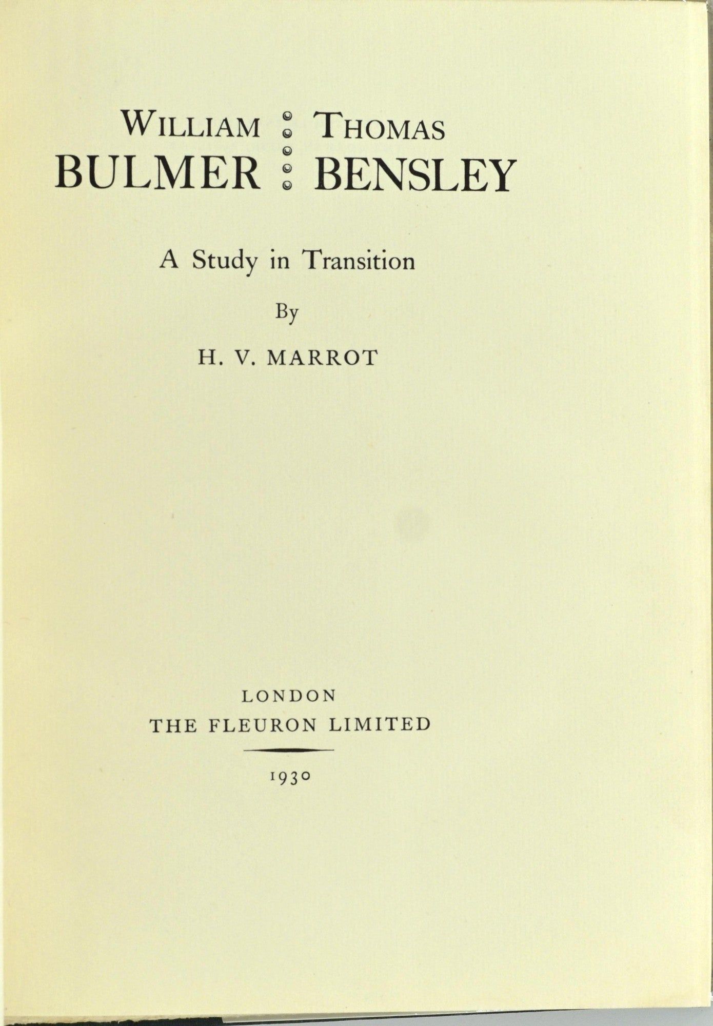 [BOOKS ON BOOKS] WILLIAM BULMER. THOMAS BENSLEY. A STUDY IN TRANSITION