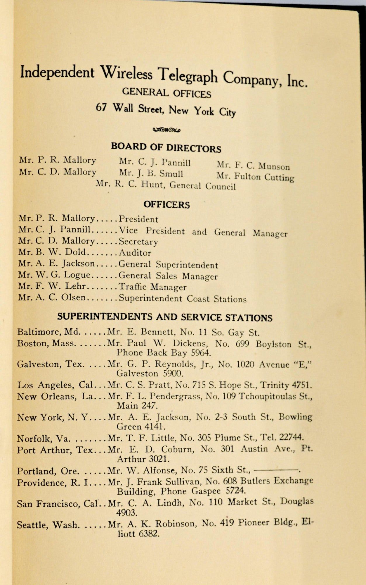 - New York: Independent Wireless Telegraph Company, 1930