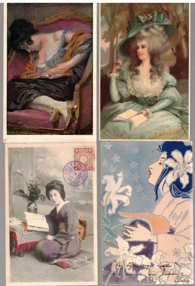 BOOKS AND READING AS DEPICTED BY THE PICTURE POSTCARD 1900-1950- 47 Postcards