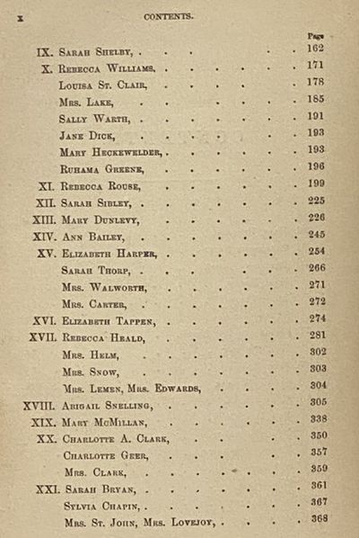 Philadelphia: Porter & Coates, 1852. Reissue. Hard Cover. Very Good/No Jacket. Reissue, circa 1890, considerably lighter than previous Porter & Coates reprints, indicating cheaper materials. Ink gift note and stamps on front endpapers, pages toned. 1852 Hard Cover. xi, [12]-434, 14 pp. 8vo. Dark yellow cloth, black stamped titles and decorations, engraved frontispiece. A collection of biographical sketches of notable women in the American West, including: Mary Bledsoe; Catharine Sevier; Rebecca Boone; Mrs. Mason; Anna Innis; Sarah Combs; Charlotte Robertson; Mrs. Dunham; Jane Brown; Sarah Wilson; Mary Moore; Mrs. Denis; Mrs. Clendenin; Mrs. Cunningham; Mrs. Scott; Mrs. Glass; Ann Haynes; Ruth Sparks; Sarah Shelby; Rebecca Williams; Louisa St. Clair; Mrs. Lake; Sally Warth; Jane Dick; Mary Heckewelder; Ruhama Greene; Rebecca Rouse; Sarah Sibley; Mary Dunlevy; Ann Bailey; Elizabeth Harper; Sarah Thorp; Mrs. Walworth; Mrs. Carter; Elizabeth Tappen; Rebecca Heald; Mrs. Helm; Mrs. Snow; Mrs. Lemen, Mrs. Edwards; Abigail Snelling; Mary McMillan; Charlotte A. Clark; Charlotte Geer; Sarah Bryan; Sylvia Chapin; Mrs. St. John, Mrs. Lovejoy; Lucy Chapin; Mrs. Anderson; Eliza Bull, Mrs. Harazthy; Mary Ann Rumsey; Ann Allen; Elizabeth Allen; Harriet L. Noble; Frances Trask; Mrs. Scott, Mrs. Talbot, Mrs. Goodrich; Mrs. Comstock; Mrs. Woodward; Journal; Elizabeth Kenton.
