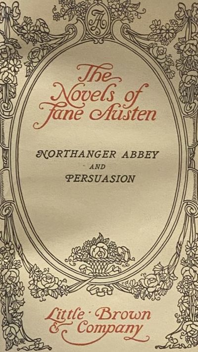 New York: Little, Brown & Company, 1930. Reissue. Hard Cover. Very Good/No Jacket. 1892 date on copyright page, but likelier early 20th century. Lacks jacket, otherwise an excellent copy. 1930 Hard Cover. 308; 328 pp. Green cloth, gilt titles and decorations on spine, top edge gilt, engraved frontispiece. Two of Jane Austen's novels bound together in one volume. Includes: Northanger Abbey; Persuasion. Northanger Abbey: During an eventful season at Bath, young, naive Catherine Morland experiences the joys of fashionable society for the first time. She is delighted with her new acquaintances: flirtatious Isabella, who shares Catherine's love of Gothic romance and horror, and sophisticated Henry and Eleanor Tilney, who invite her to their father's mysterious house, Northanger Abbey. There, her imagination influenced by novels of sensation and intrigue, Catherine imagines terrible crimes committed by General Tilney. With its broad comedy and irrepressible heroine, this is the most youthful and and optimistic of Jane Austen's works. Persuasion: At twenty-Âseven, Anne Elliot is no longer young and has few romantic prospects. Eight years earlier, she had been persuaded by her friend Lady Russell to break off her engagement to Frederick Wentworth, a handsome naval captain with neither fortune nor rank. What happens when they encounter each other again is movingly told in Jane Austen's last completed novel. Set in the fashionable societies of Lyme Regis and Bath, Persuasion is a brilliant satire of vanity and pretension, but, above all, it is a love story tinged with the heartache of missed opportunities.