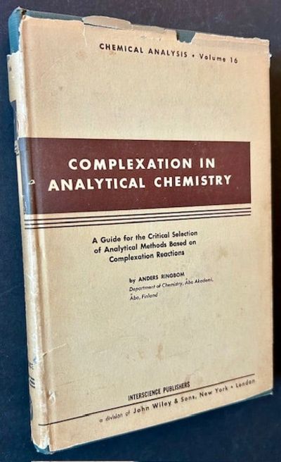 New York: Interscience Publishers (John Wiley & Sons), 1963. Cloth. Very Good -/Very Good -. The 1963 1st edition, in its uncommon dustjacket. A cleanly ex-libris copy, with an institutional stamp ("Atlas Chemical Industries") at the front free endpaper, a libray stamp to the toip and bottom-edges, a bit of tape at the flap-folds and the library pocket affixed to the rear endpaper. Still though, very presentable. Solid and VG- to VG in in a bright, VG- example of the uncommon dustjacket, with chipping at the spine crown and, less so, along the top-edges. Octavo, Vol. XVI in Wiley's formidable series called "Chemical Analysis: A Series of Monographs on Analytical Chemistry and Its Applications