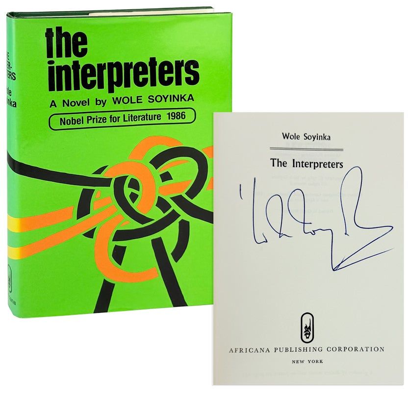 New York: Africana Publishing Corporation, 1988. Near Fine/Near Fine. New York: Africana Publishing Corporation, [ca. 1988]. Reprint. Signed by Soyinka at title page without inscription. Octavo. 254pp. Illustrated dust jacket; green boards stamped in gilt. Light rubbing to edges of dust jacket, a couple smudged to rear; mild shelfwear to boards; binding sound and pages unmarked; a Near Fine copy of the Nobel Prize winner's first novel, originally published in 1965.
