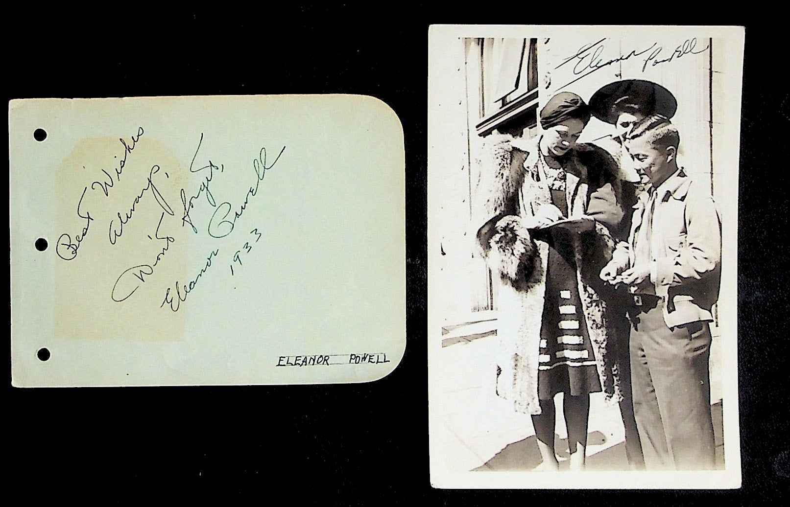 * Autograph written on small green sheet of paper with "Best Wishes Always, Don't forget, Eleanor Powell, 1933. Accompanied by a certificate of authenticity from Piece of the Past, Inc.