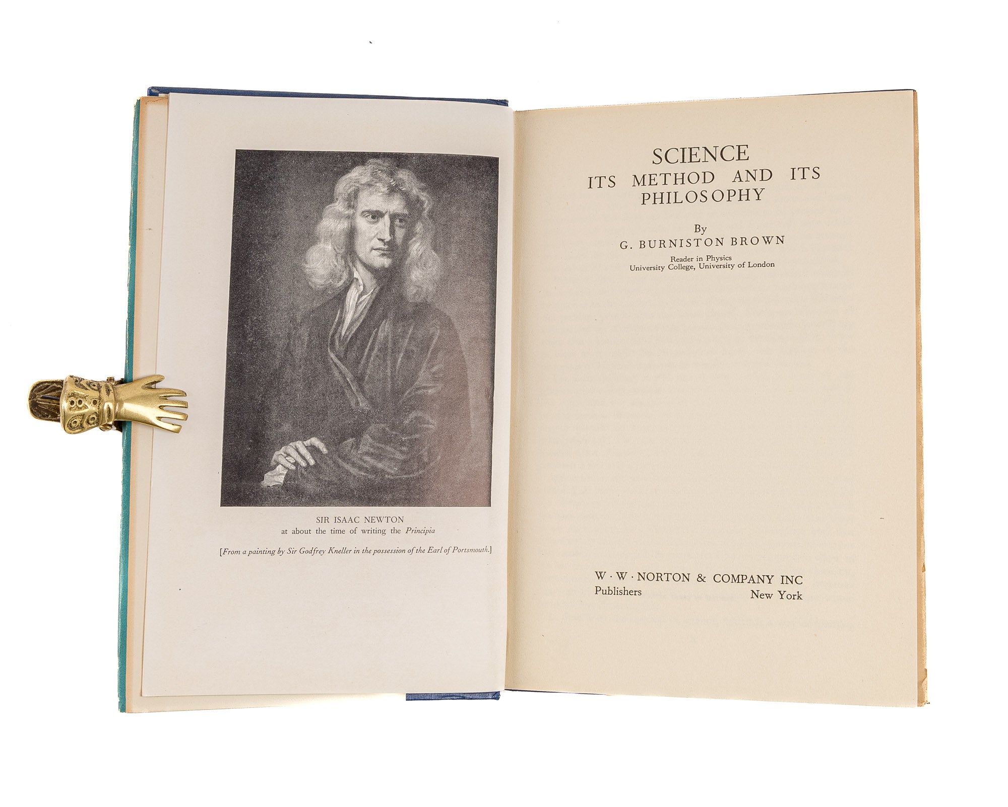 1950. Brown, G. Burniston. Science: Its Method and Its Philosophy. New York: W.W. Norton, [1950]. 189 pp. Frontispiece. Blue cloth very good in worn and torn dust jacket. Internally clean. $15. * This richly illustrated textbook explores the nature of scientific reasoning, the scientific method, and the philosophical ideas underpinning scientific practice. It was intended to help democratize scientific thought for both academic and general readers in the mid-20th century.