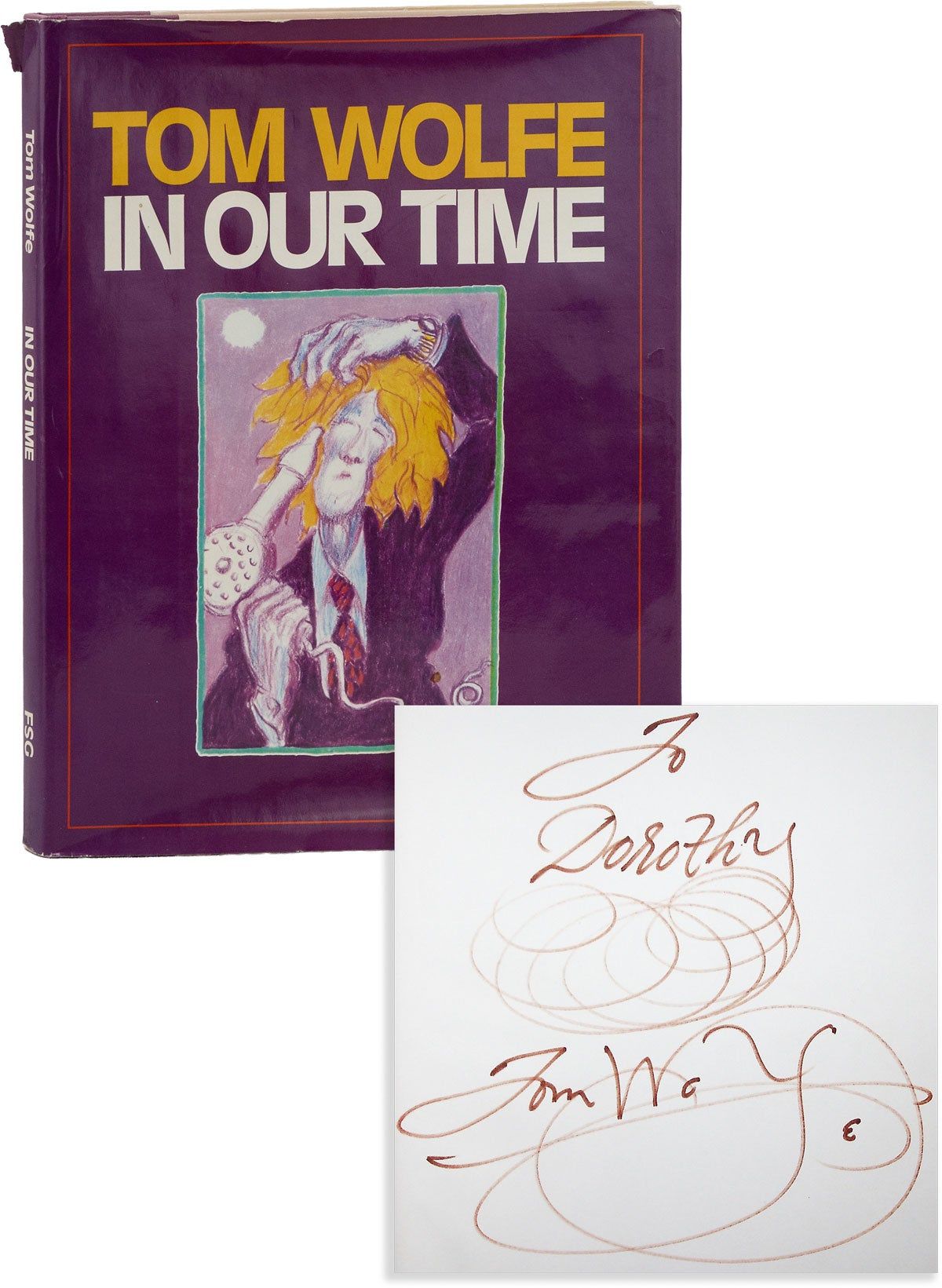 New York: Farrar, Straus, Giroux, 1980. First Edition. First Printing. Quarto (28.5cm); lavender paper-covered boards and purple cloth backstrip, with titles stamped in gilt on spine; dustjacket; [viii],[1]-119,[1]pp. Inscribed by the author with quote a bit of flourish in brown marker on front endpaper: "To Dorothy / Tom Wolfe." Slight forward lean, lower corners bumped (though still sharp), with boards and textblock slightly misaligned, and some offsetting from front panel text onto front cover; Very Good. Dustjacket is unclipped (priced $12.95), edgeworn, with several closed tears and attendant creases; Very Good or better. Collection of short prose vignettes and black & white caricatures. 86345.
