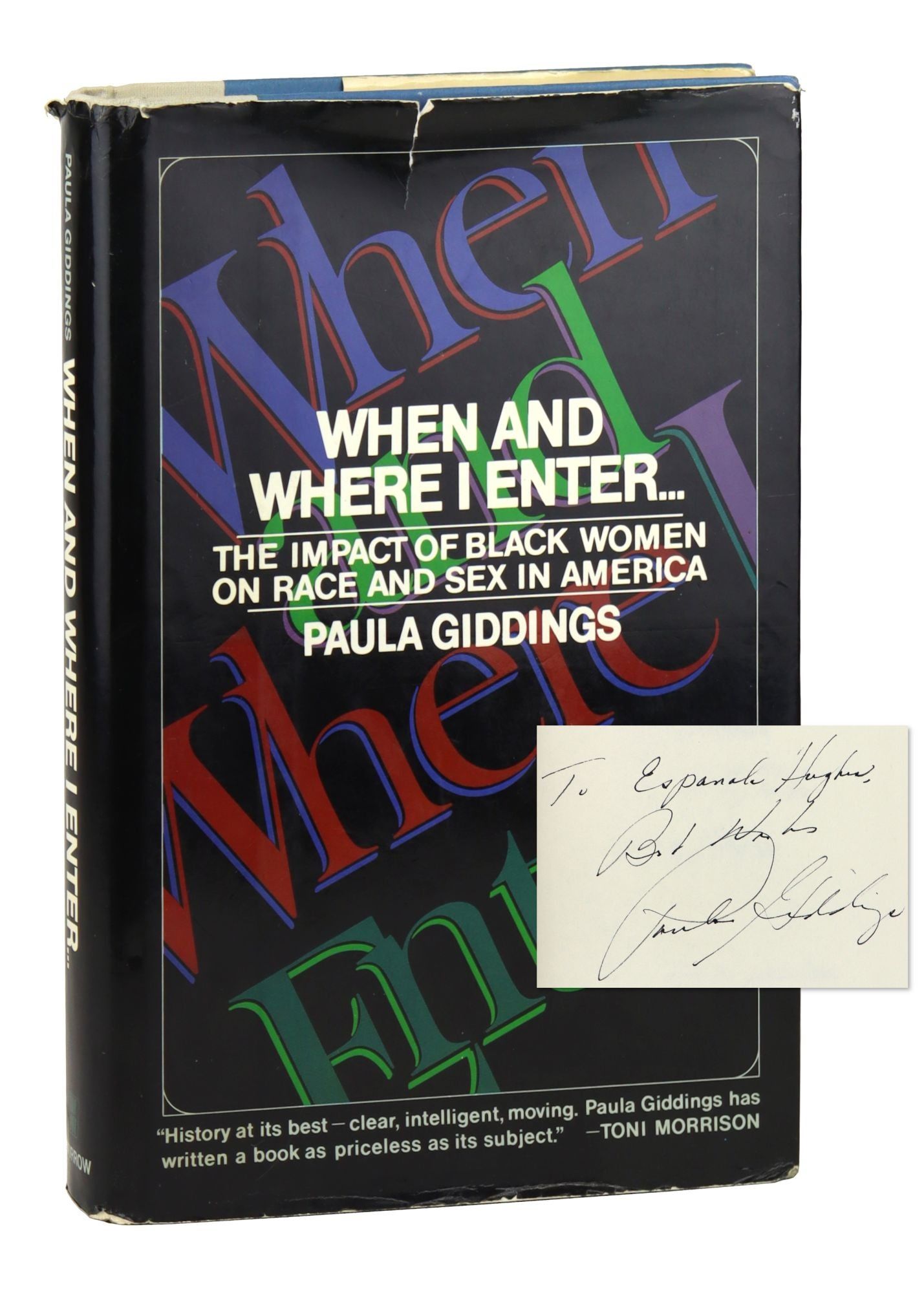 Signed by the author on half title with inscription "To Espanola Hughes, Best Wishes, Paula Giddings" dated Dec. 9, 1984.