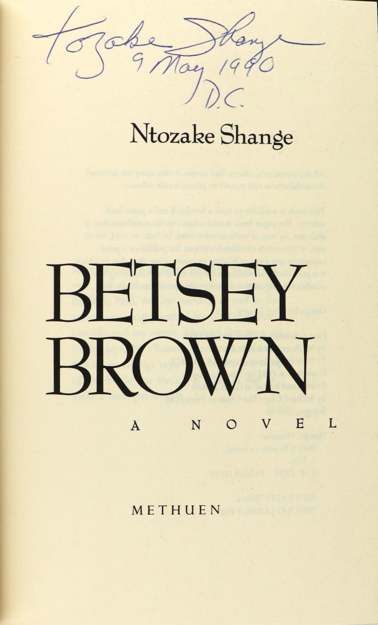 Signed by the author on full title without inscription, dated 9 May 1990 in Washington, DC. Shange's novel about an African-American girl coming of age while navigating the first wave of school integration in 1959 St. Louis.