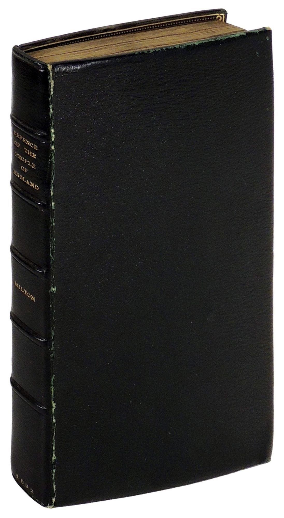 n.p.: n.p., 1692. Hardcover. Very Good+. Hardcover. A handsome edition of John Milton's famous work first published in 1652. John Milton (1608 – 1674) was an English poet, polemicist, and civil servant. He served as a civil servant for the Commonwealth of England under its Council of State and later under Oliver Cromwell 1651. In February 1652, Milton published his Latin defence of the English people Defensio pro Populo Anglicano, also known as the First Defence. In 1654, The second defence praised Oliver Cromwell, now Lord Protector, while exhorting him to remain true to the principles of the Revolution. Cromwell's death in 1658 caused the English Republic to collapse into feuding military and political factions. Milton, however, stubbornly clung to the beliefs that had originally inspired him to write for the Commonwealth. Milton participated in major controversies against two polemicists on the Continent: Claudius Salmasius (Claude de Saumaise), a Frenchman, and Alexander More (Morus). Charles II, while living in exile in France, is thought to have enlisted Salmasius to compose a Latin tract intended for a Continental audience that would indict the Englishmen who tried and executed Charles I. Universally acknowledged as a reputable scholar, Salmasius posed a formidable challenge to Milton, whose task was to refute his argument. Often imbued with personal invective, Milton’s Defense of the English People Against Salmasius (1651), a Latin tract, fastens on inconsistencies in Salmasius’s argument. Milton echoes much of what he had propounded in earlier tracts: that the execution of a monarch is supported by authorities from Classical antiquity to the early modern era and that public necessity and the tyrannical nature of Charles I’s sovereignty justified his death. Bound in later black leather with gilt titling to spine. Some rubbing and wear along the spine edges. Pastedowns have gilt ruled leather borders that caused offsetting to front and rear free endpapers. Ownership label of "AHA" is affixed to front pastedown. With gilt page edges. Text pages are clean but show some aging. A nice copy of this important work in very good plus condition. Measures 4.5 x 7 inches. 246 pages plus an advertisement from the publisher (not named) defending the name and reputation of King Charles I. ENGHIST/073025.