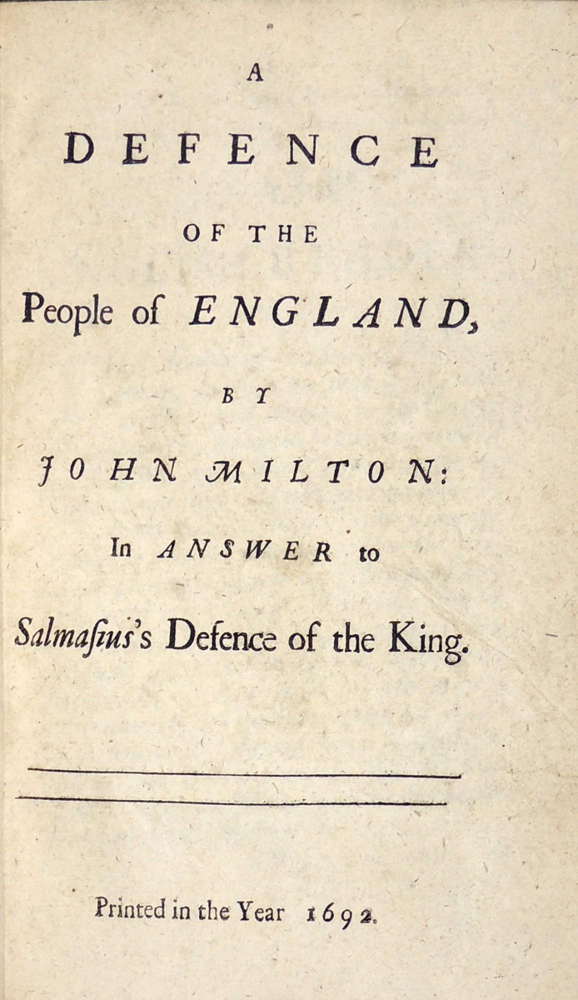 A Defence of the People of England, by John Milton in Answer to Salmasius's Defence of the King