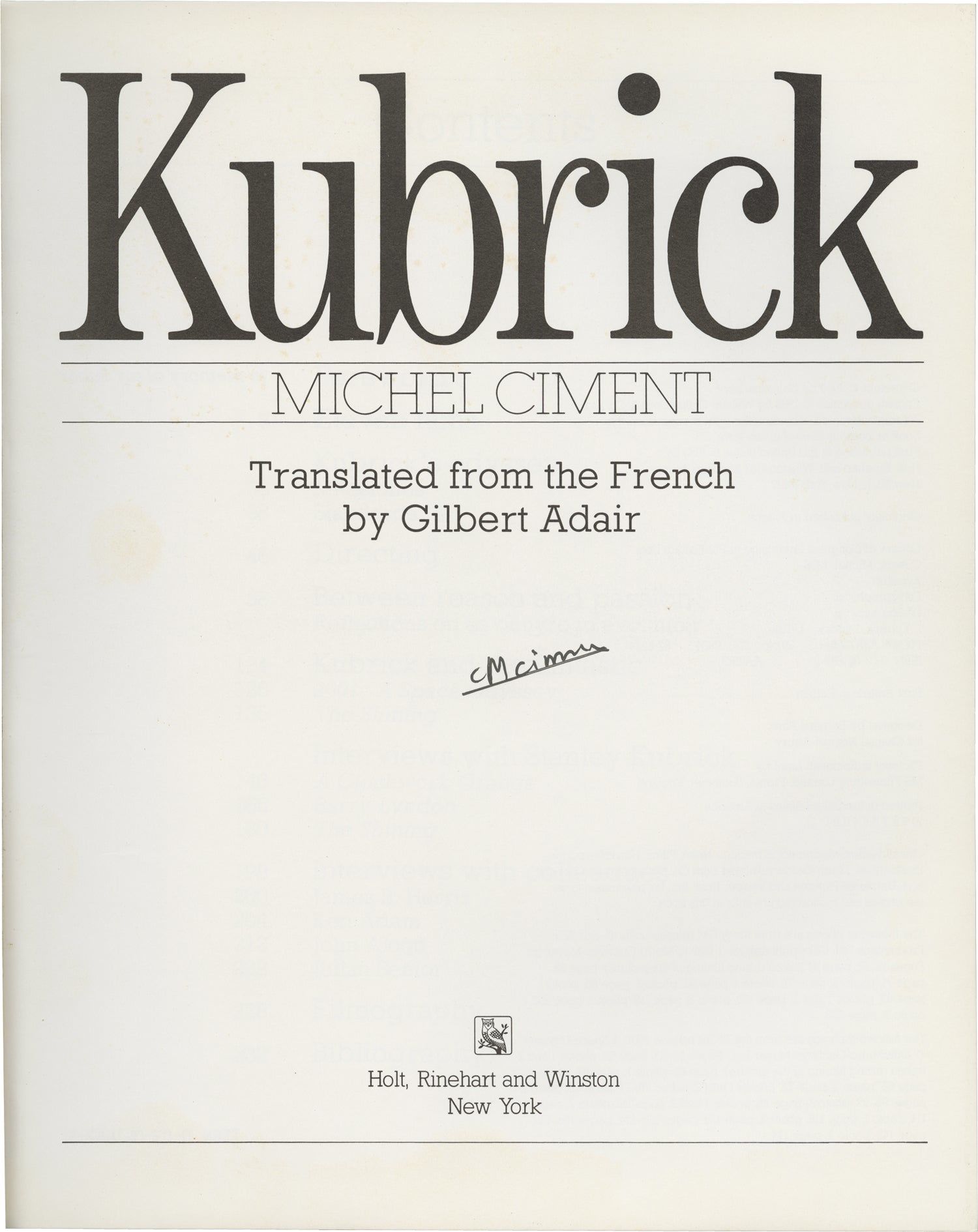 New York: Holt, Rinehart and Winston, 1983. First US Edition. SIGNED by author Michel Ciment on the title page.