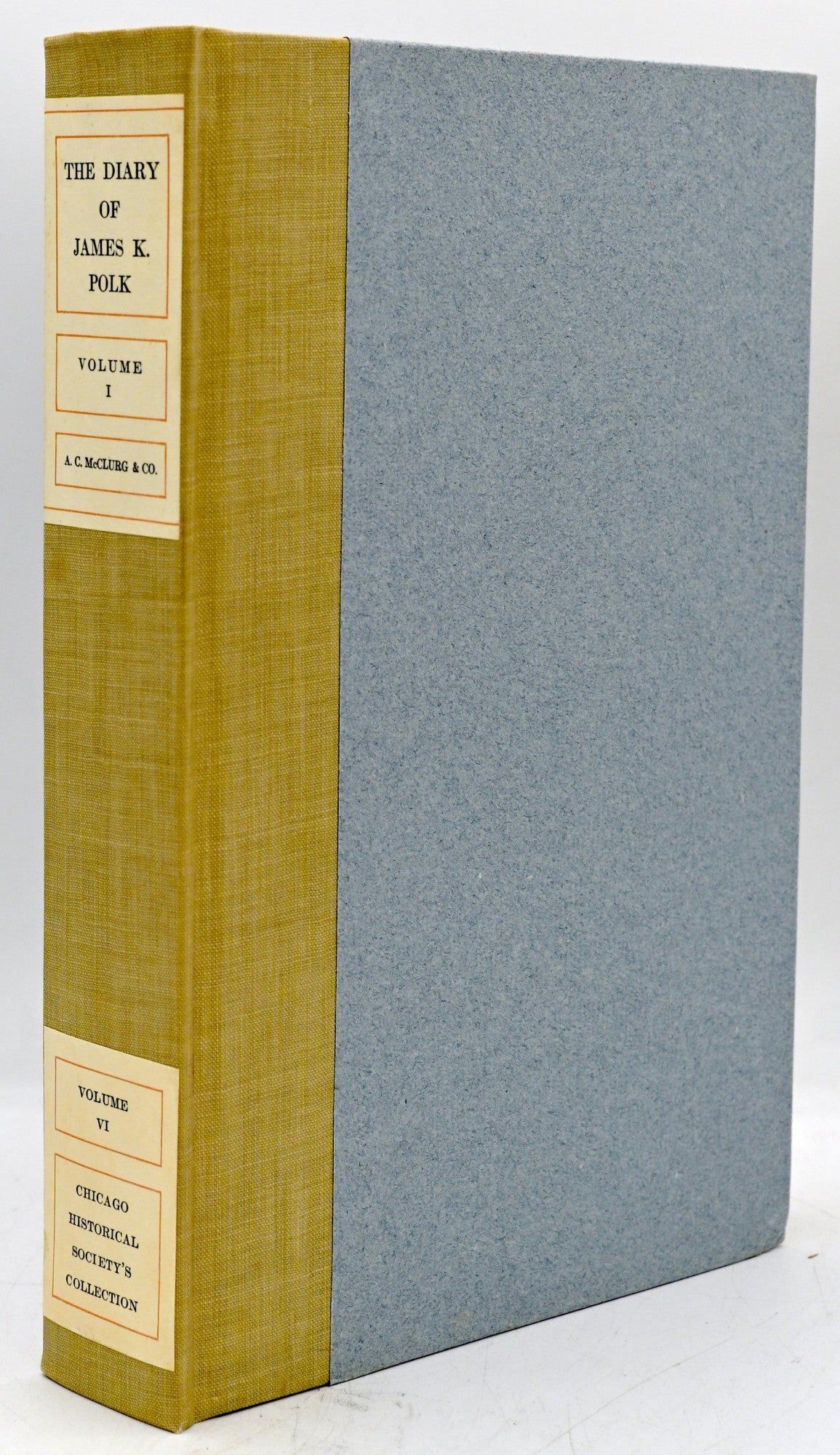 Chicago: A. C. McClurg & Co.~, 1910. First Edition. Hard Cover. Fine binding. Four large octavo volumes; in the publisher’s blue paper-covered boards backed in glazed linen, with two paper labels; xxxii, 498 pages; 494 pages; 508 pages; 462 pages, including Index; each volume with an engraved frontispiece, with two tissue guards, the second of which is captioned in red; the set is housed in the publisher’s paper-covered boards, with a pastedown title to the top; the pages are unopened.~~President Polk decided to keep this voluminous diary in 1845 “when a very important conversation took place in [the] Cabinet [LOC.Gov].~~"This work forms volumes VI-IX of the Chicago Historical Society's collection, a special issue of 500 copies being printed for the purposes of that society."~~A beautiful and bright copy of this set, in the original slipcase which has been discreetly repaired. From the library of historian Gary W. Gallagher, with a card attesting to this laid in. (Howes F-445). Fine binding.