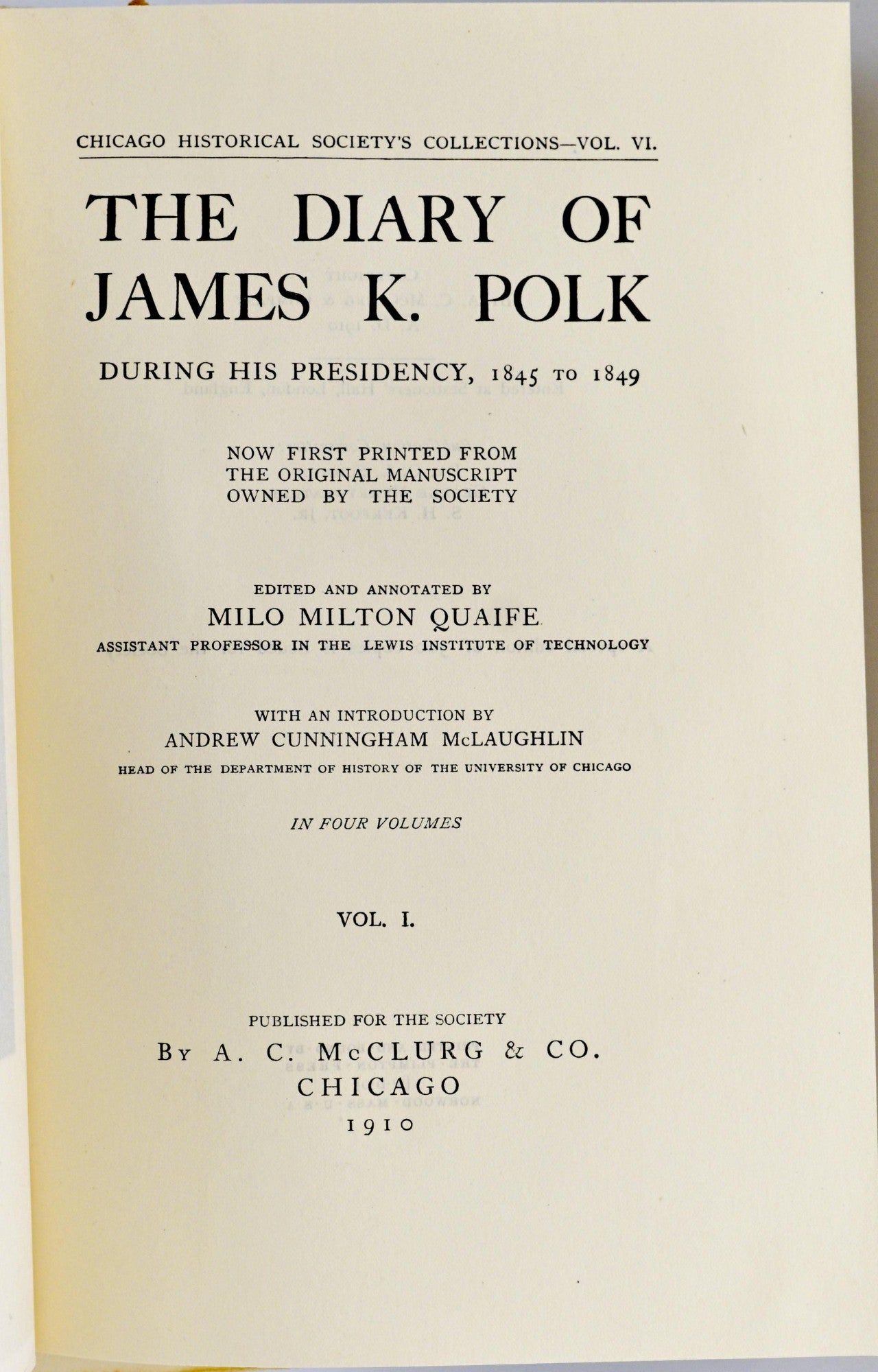 [AMERICANA] THE DIARY OF JAMES K. POLK DURING HIS PRESIDENCY, 1845-1849, NOW FIRST PRINTED FROM THE ORIGINAL MANUSCRIPT IN THE COLLECTIONS OF THE CHICAGO HISTORICAL SOCIETY [4 VOLUMES; IN PUBLISHER’S BOX]