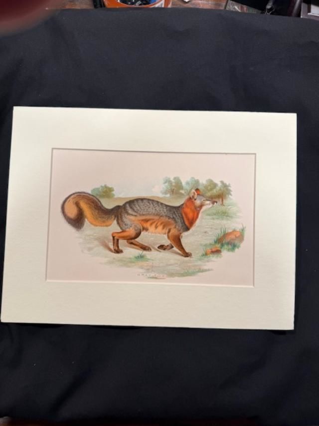 Print, chromolithograph, about 10" X 6 1/2". Bright and clean. This plate features a Gray Fox in active position. Attrative print with really nice colors.