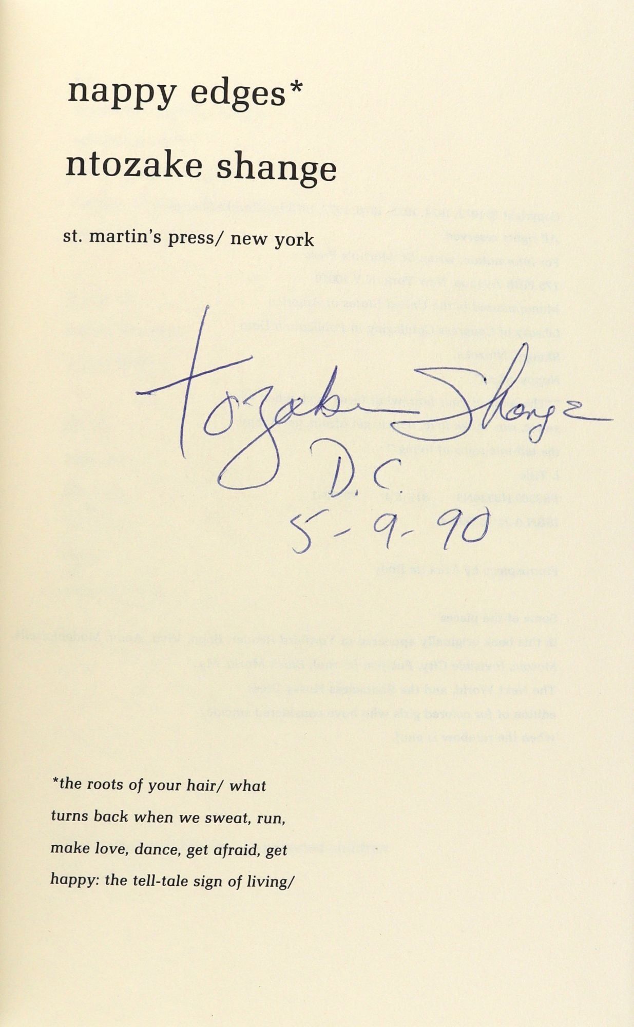 Signed by the author without inscription and dated "D.C. 5-9-90" on full title. Shange's third book of poems.