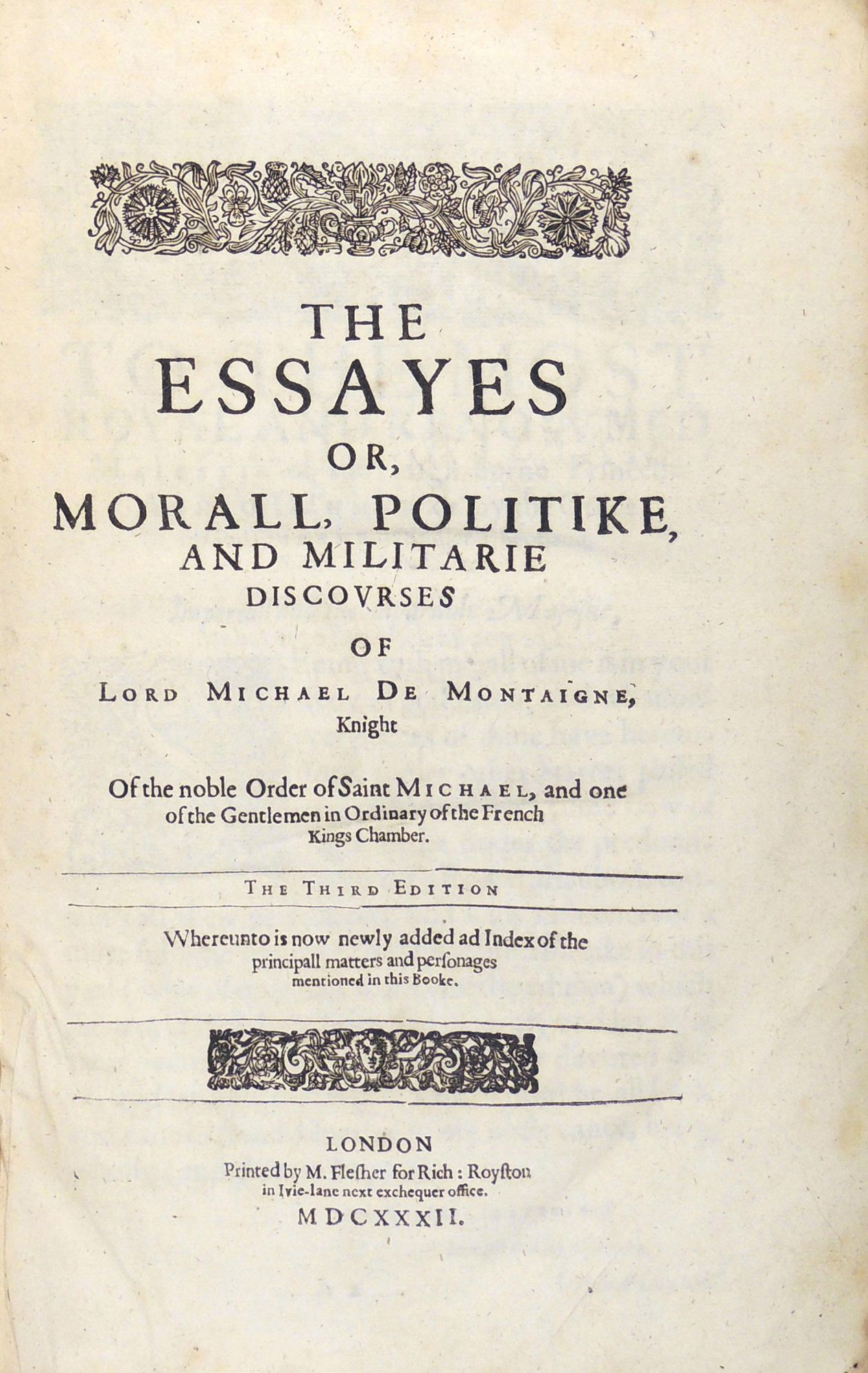 The Essayes or, Morall, Politike, and Militarie Discourses of Lord Michael de Montaigne, Knight of the Noble Order of Saint Michael, and One of the Gentlemen in Ordinary of the French Kings Chamber
