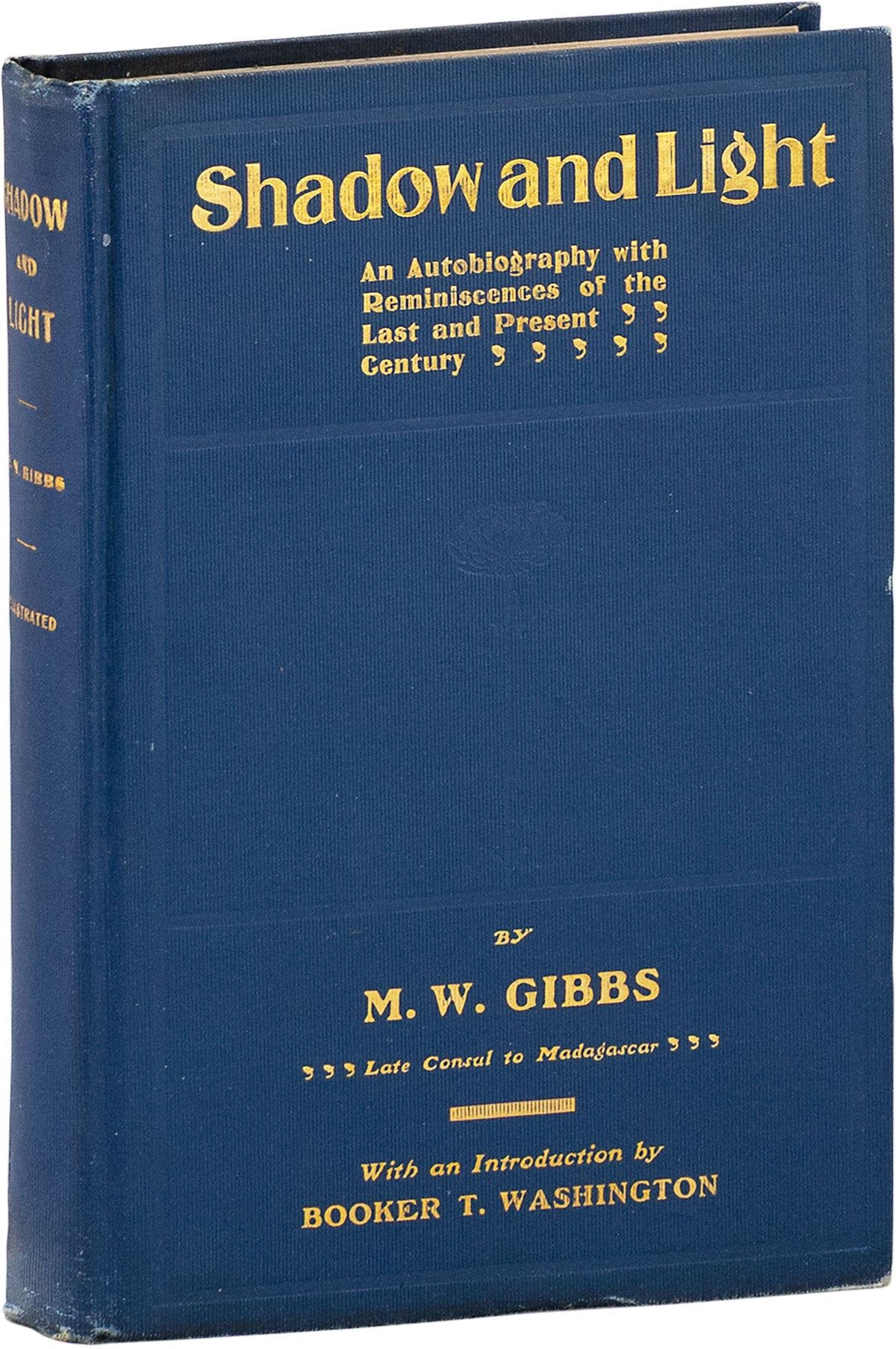 A lively account of the life and times of Mifflin Wistar Gibbs (1823-1915), an American businessman, politician, and newspaper publisher from Philadelphia. Shadow and Light recalls his impoverished youth, his early involvement in aiding fugitive slaves while working with William Grant Still, and accompanying Frederick Douglass on his 1849 tour of New York. Gibbs moved west during the Gold Rush in 1850, sensing that there was more money to be made in business than in panning for gold; he and his partner established a prosperous clothing and dry goods business, and a few years after, Gibbs purchased and became the editor of the Mirror of the Times, the local Black antislavery newspaper. He moved to Victoria, British Columbia during the Canadian gold rush, opening an additional business, before returning to the U.S., where he got married, began his legal education, and established himself in Little Rock, Arkansas. "Beginning as a lawyer, he was later appointed to county attorney, and in 1873 he won election as municipal judge of Little Rock, reportedly the first black man in the nation to be so honored" (AANB Vol.3, p.484). He lost the judgeship in 1875, but embarked on a career in local and national politics, ultimately being appointed by Rutherford B. Hayes as register of the U.S. Land Office for the Little Rock District, and eventually as U.S. consul to Tamatave, Madagascar (1898-1901). The remainder of his life was dedicated to causes that would advance "the progress of the race." Uncommon in commerce, with the last copy in the auction record offered in 1962. BLOCKSON 3987; AANB Vol.3, pp.483-485. 85955.