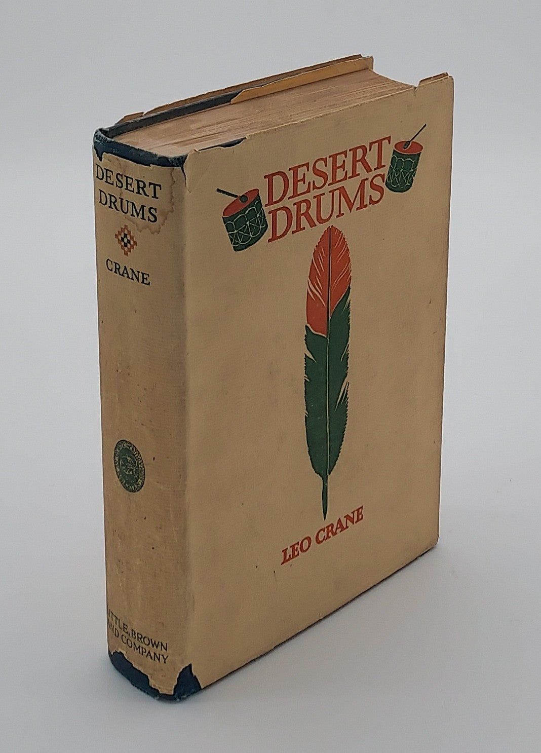 Boston: Little, Brown, and Company, 1928. First edition. Hardcover. Very Good/Good +. 393pp. Octavo [23 cm] Blue cloth over boards with decorative ink stamping on front board. Top edge gilt. Scuffing to extremities. In a price-clipped dust jacket, with light soiling, several small moisture stains, and a couple of small losses from the edges. Leo Crane was a southwest author who spent most of his life in New Mexico. He wrote "Desert Drums" and "Indians of the Enchanted Desert.