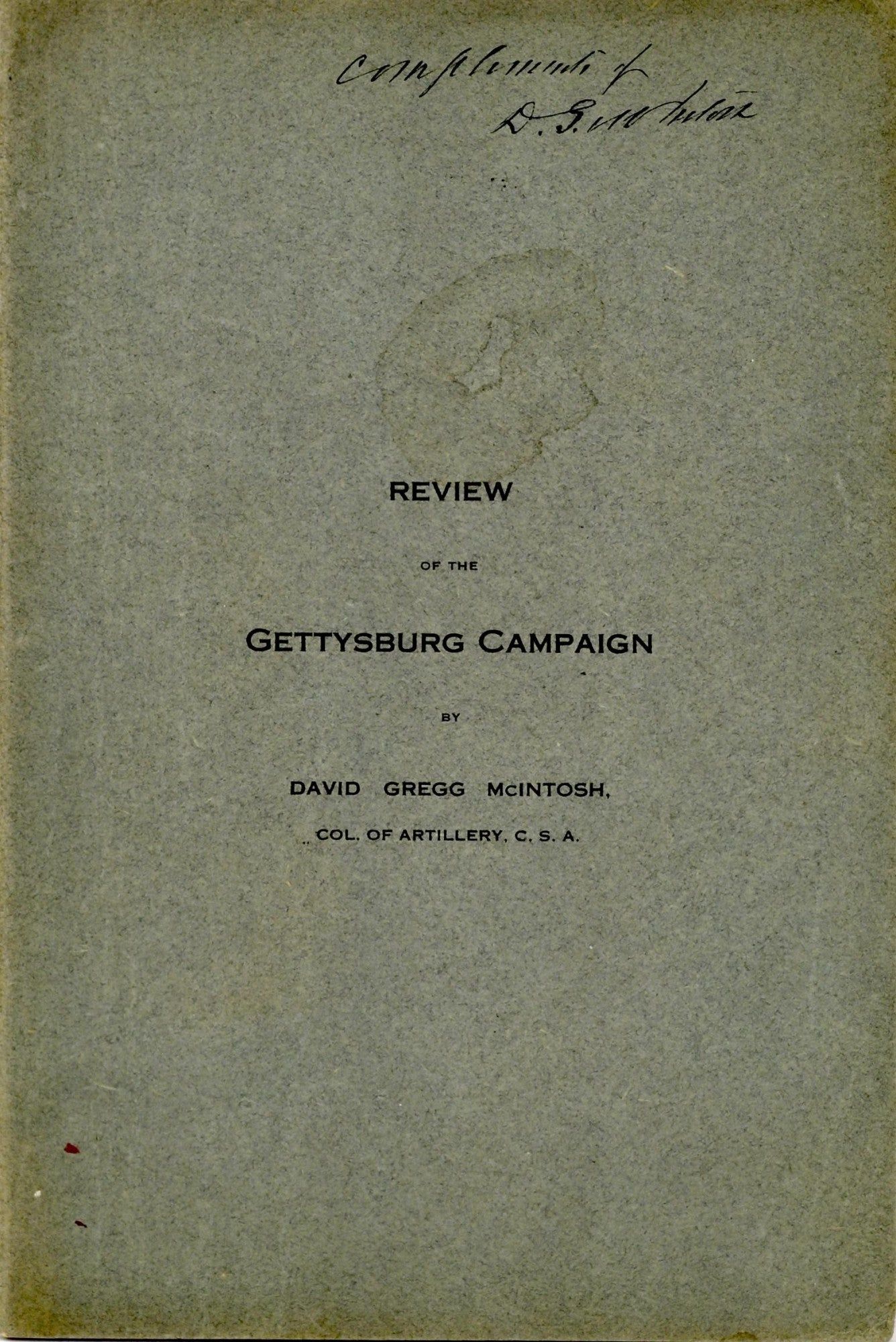 [SIGNED] [CIVIL WAR] REVIEW OF THE GETTYSBURG CAMPAIGN
