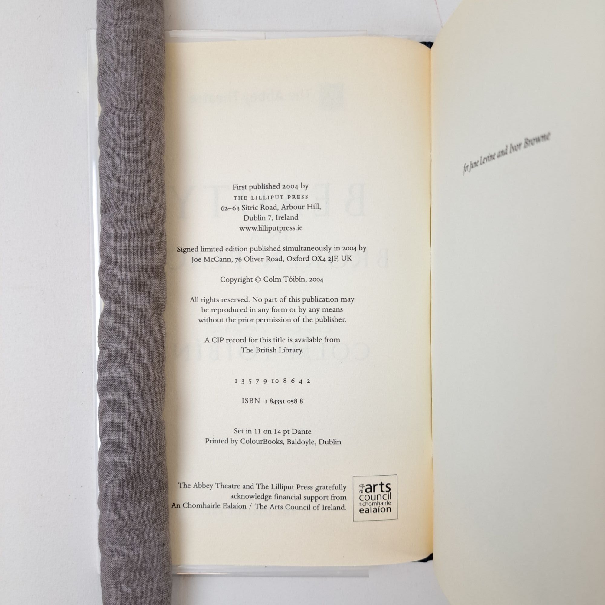Dublin, Ireland: The Lilliput Press, 2004. First Edition, First Printing. Hardcover. Small octavo, 77 pages. In Very Good condition with Near Fine condition dust jacket. Spine is teal with black and white lettering. Dust jacket protected by mylar covering. Boards have mild creasing along front tail joint. Textblock edges have mild age-toning. Signed flat on title page by Colm Tóibín. Shelved Room C. 1401925. Special Collections.