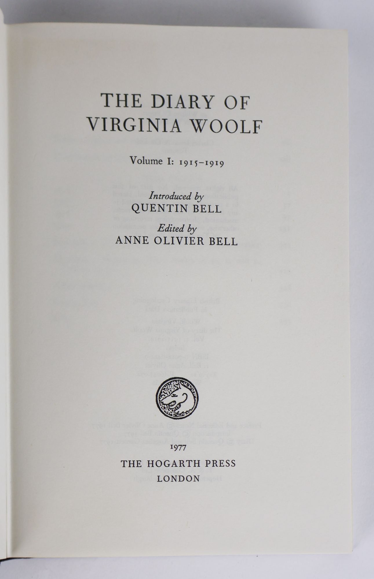 THE DIARY OF VIRGINIA WOOLF: Volume I: 1915-1919 [Volume One Only]