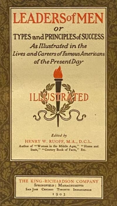 Springfield, Massachusetts: The King-Richardson Company, 1903. Hard Cover. Very Good/No Jacket. 0x0x0. Minor wear to corners, white mark along 3 inches of front board edge. Binding tight and square, pages clean, bright, and unmarked. 1903 Hard Cover. 695 pp. A collection of life strategies from various business and political luminaries of the late 19th and early 20th centuries, including contributions from Theodore Roosevelt, William Jennings Bryan, Lew Wallace, Silas Weir Mitchell, James Whitcomb Riley, Andrew Carnegie, John Pierpont Morgan, John Wanamaker, Thomas Alva Edison, John Davison Rockefeller, etc. Includes numerous photographic portraits, as well as a photo of the New York Stock Exchange.