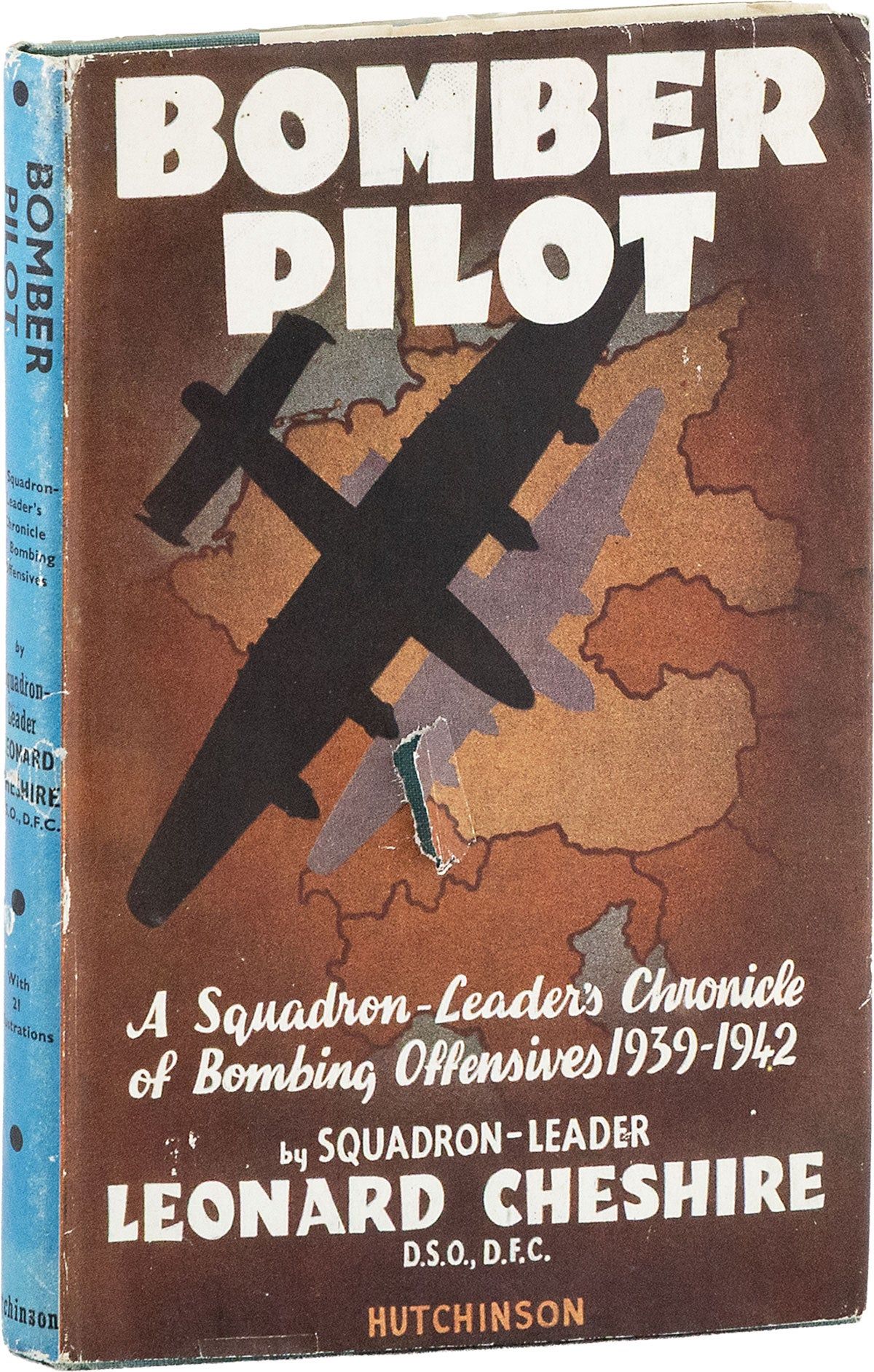 London and New York: Hutchinson & Co., Ltd, [n.d.]. Octavo (22cm); blue cloth-covered boards with titling stamped in black on spine; dustjacket; [4],5-136pp; photographic frontispiece with black-and-white halftones througout. Date (1943) pencilled to title page. Light rubbing of cloth to spine ends and board edges, with corners lightly nudged, and foxing to edges of textblock; Very Good. Dustwrapper, price-clipped, with modest shelf-wear and rubbing, 1" tear to front panel, tiny tears to spine panel edges and wrapper extremities, and tape mends to verso of spine panel; Good. Explores the Royal Air Force, with a focus on Squadron-Leader Chesire's experiences with bombing offensives from 1939-1942. [86718].