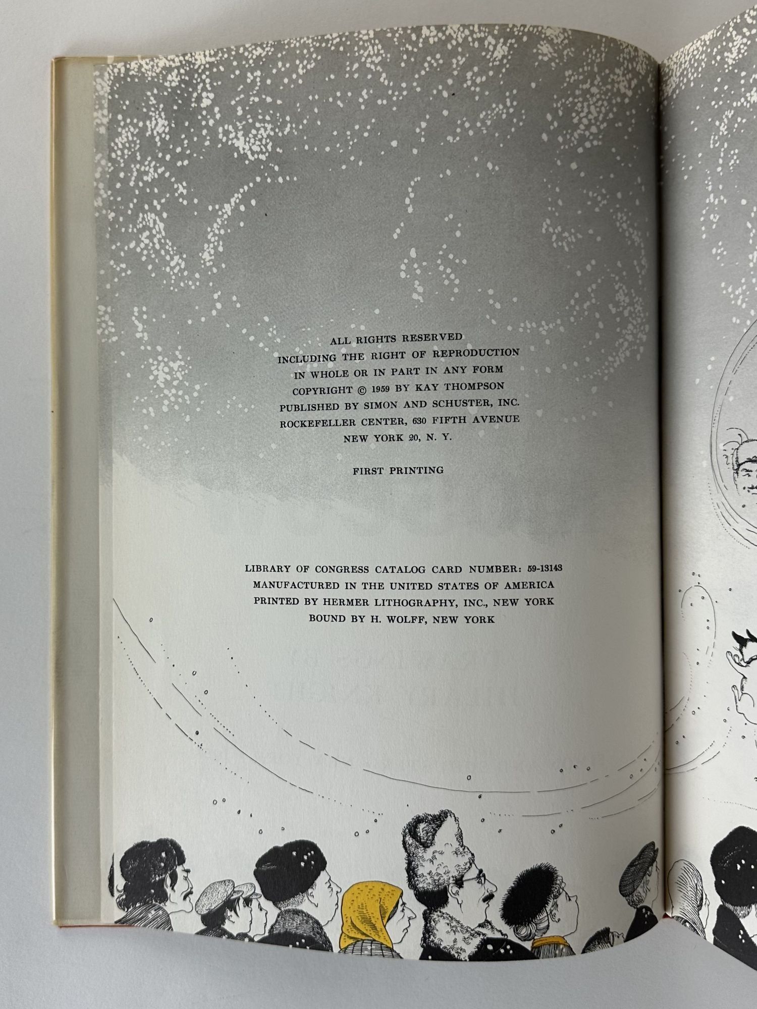 New York: Simon and Schuster, 1959. First Edition, First Printing. Hardcover. Quarto, unpaginated. In Very Good condition with a Very Good minus dust jacket. Spine off-white with black and red lettering. Dust jacket protected with mylar covering, price uncut: "$3.75". Minor scuffing and age toning to dust jacket. Minor chipping and creasing to edges and corners of dust jacket. Slight bumping to head and tail of spine. Interior pages clean. Shelved Case 14. 1402399. Shelved Dupont Bookstore.